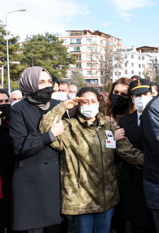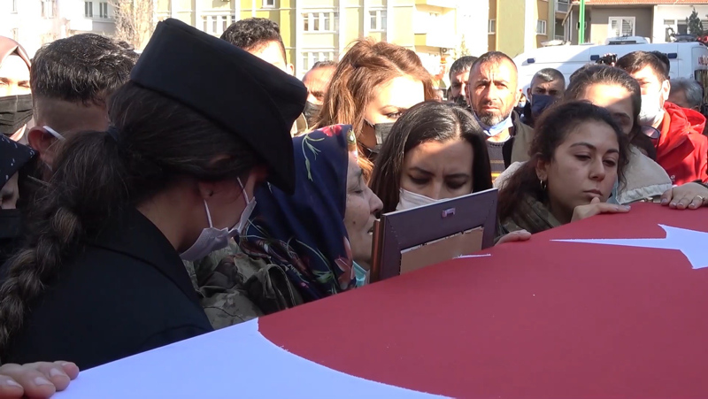 Suriye İdlib Gerginliği Azaltma Bölgesi'nde yol emniyet görevi sırasında şehit olan Piyade Uzman Çavuş Emre Ceylan için memleketi Kırıkkale'de cenaze töreni düzenlendi. Şehit uzman çavuşun nişanlısı Eda Ceylan, üniforma giyerek asker selamı verdi.