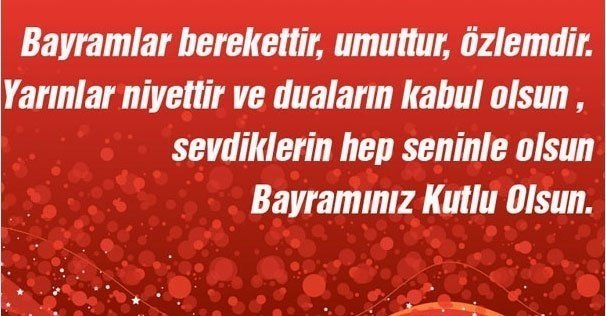 Bayramlar, insanlar arasındaki karşılıklı sevgi ve saygının perçinlendiği günlerdir. Bayramlar, insanların birbirleriyle olan dargınlıklarını unuttukları, barıştıkları, kardeşçe kucaklaştıkları günlerdir. Kurban Bayramın mübarek olsun!