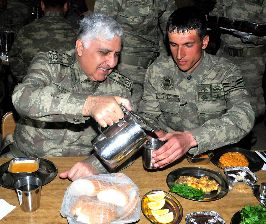 3. Komando Taburu Yemekhanesi'nde er ve erbaşlarla ''mercimek çorbası, elbasan tava, bulgur pilavı, puding ve limonata''dan oluşan karavanadan yiyen Özel, masasına oturduğu askerlerin bardaklarına sürahiden su doldurarak, onlarla sohbet etti.