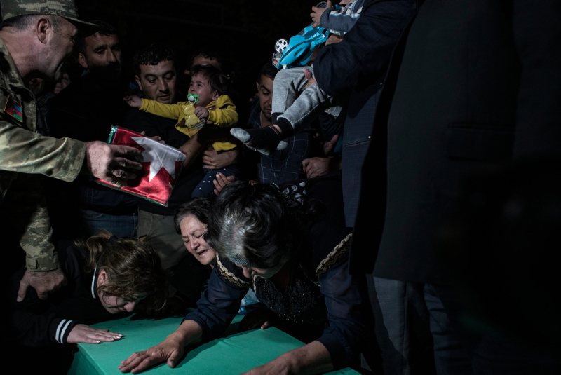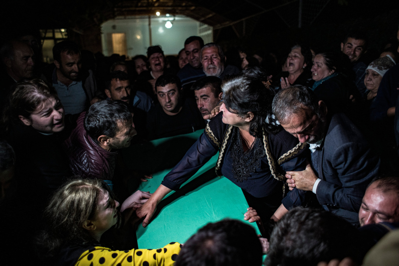 Ermenistan'ın Azerbaycan'ın Terter kentindeki mezarlıkta cenaze törenine katılan sivillere saldırmasının ardından hayatını kaybeden Orucov Perviz Novruzoğlu (29) ve kayınpederi İskender Emirov, Terter'e bağlı Mamırlı köyünde toprağa verildi. Orucov'un ikiz çocukları ve eşinin tabuta sarılarak gözyaşı dökmesi yürekleri dağlarken, cenazelerin yeni bir saldırı ihtimaline karşı akşam defnedildiği öğrenildi.