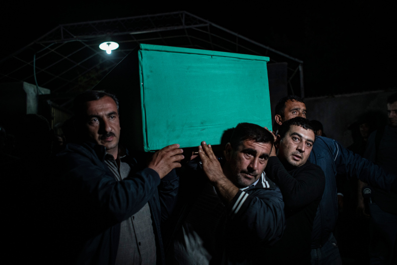 İşgalci Ermenistan'ın Azerbaycan'ın Terter kentindeki mezarlıkta hedef aldığı sivillerin cenazeleri, başkan bir alçak saldırıdan korunmak için akşam defnedildi. 29 yaşındaki Orucov Perviz Novruzoğlu ve kayınpederi İskender Emirov, Terter'e bağlı Mamırlı köyünde toprağa verildi.