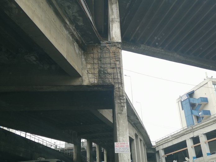 İstanbul'un Avrupa Yakası'nda 29 yıldır hizmet veren, her gün binlerce insanın kullandığı Bayrampaşa'daki otogarın alt katlarındaki birçok bölümünde kolon ve kirişlerin sıvaları dökülmeye başladı. İstanbul Büyükşehir Belediyesince işletilen otogarda, dökülen sıvalar nedeniyle kolon ve kirişlerin içerisindeki demirler de açığa çıktı. Demirlerde korozyona bağlı paslanmaya da rastlandı.