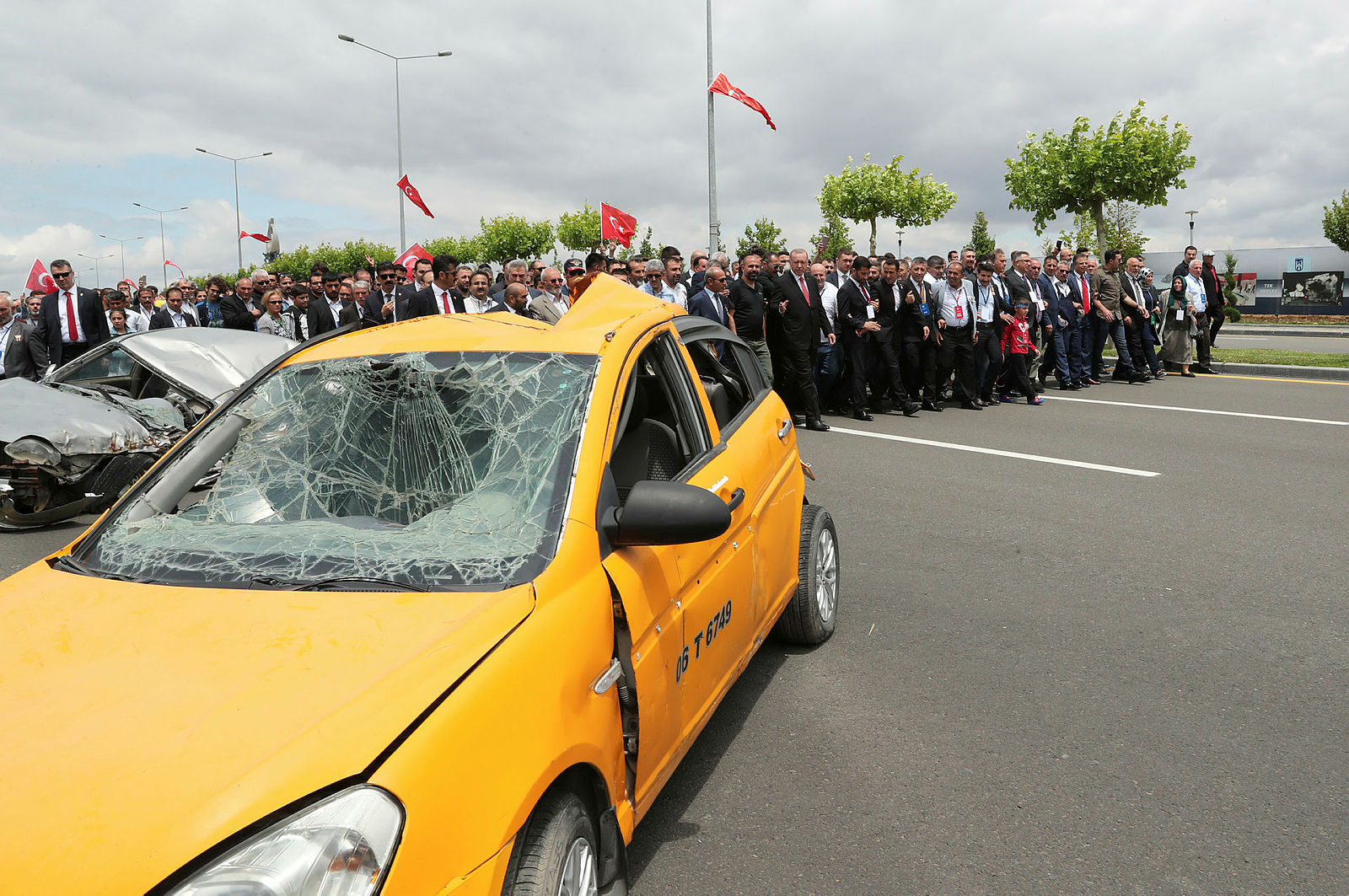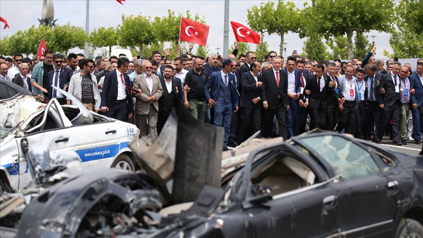 Başkan Recep Tayyip Erdoğan ile şehit yakınları ve gaziler, 15 Temmuz Şehitler Abidesi'nden Millet Camisi'ne, hasarlı araçların sıralandığı güzergahtan yürüyerek geçti.