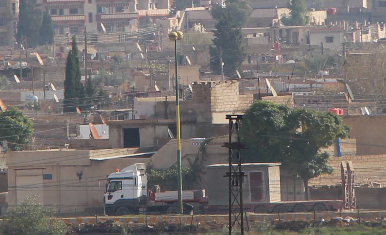 Mardin'in Nusaybin ilçesine sınır komşusu olan Suriye'deki terör örgütü PKK/YPD denetimindeki Kamışlı kentine TIR'larla zırhlı nöbetçi kulübeleri getirildi.