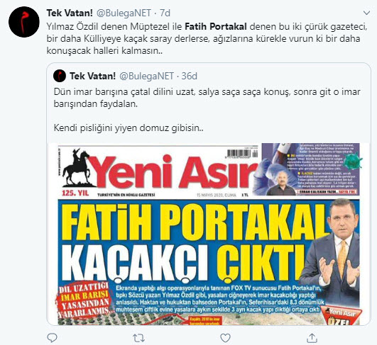 Sözcü Gazetesi yazarı Yılmaz Özdil ile ilgili kaçak villa skandalı gündemdeki yerini korurken, Özdil gibi yine algı operasyonlarıyla tanınan FOX TV'nin Ana Haber Sunucusu Fatih Portakal'ın da İzmir Seferihisar'daki lüks çiftlik evindeki kaçak yapıları için İmar Barışı'ndan faydalanan isimlerden biri olduğu ortaya çıktı.