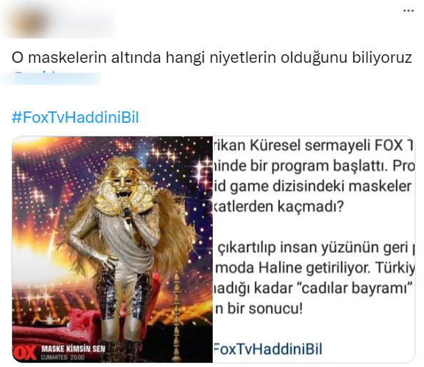 İşte sosyal medya üzerinden FOX TV ve "Maske Kimsin Sen?" isimli yapımda kullanılan satanist ve paganist unsurlara yönelik gelen tepkilerden bazıları...