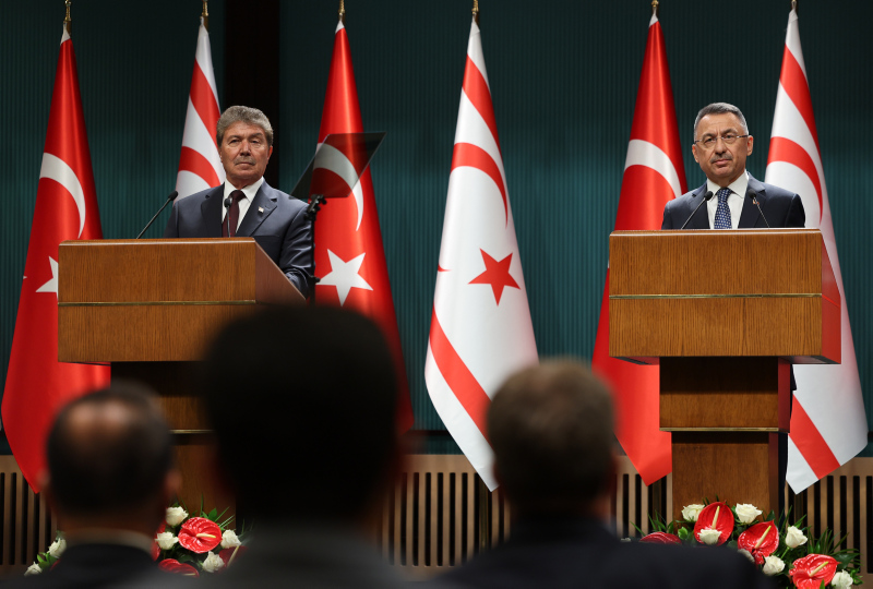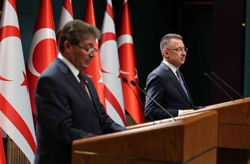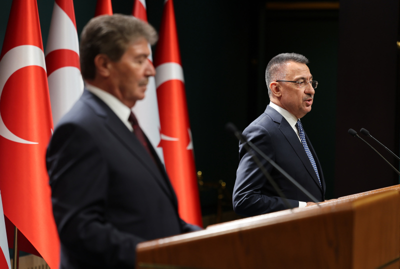 Cumhurbaşkanı Yardımcısı Fuat Oktay, Cumhurbaşkanlığı Külliyesi'nde ortak basın açıklamasında bulundu. Oktay, burada yaptığı açıklamarında "Türk tarafı, Ada'daki iki tarafın egemen eşitliğine ve eşit uluslararası statüsüne dayanan bir vizyon ortaya koymuştur. Kıbrıs Rum Yönetimi provokatif faaliyetlerinin cevapsız kalmayacağını bilmelidir" dedi.