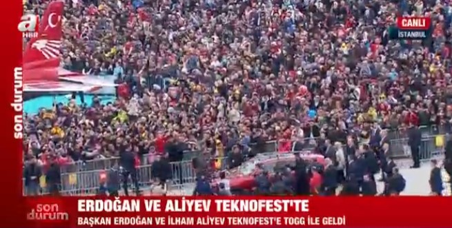 Başkan Erdoğan, TEKNOFEST alanına Azerbaycan lideri İlham Aliyev ile birlikte TOGG'la geldi.
