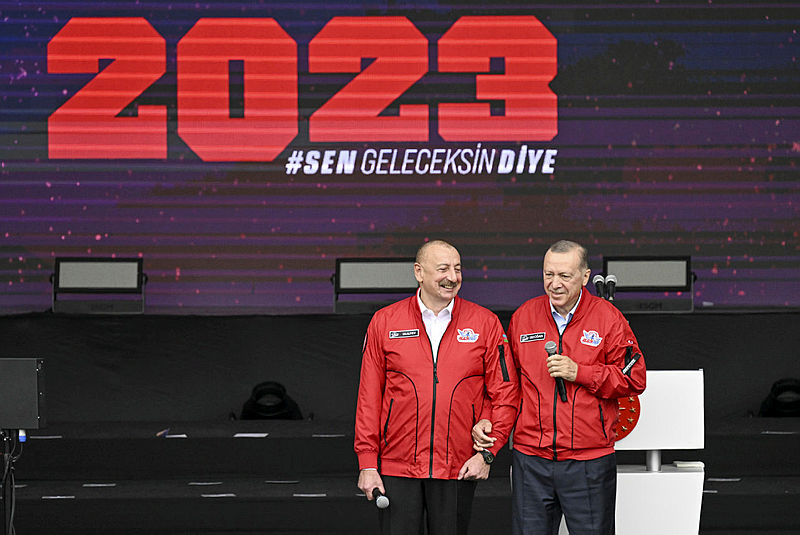 Aliyev TOGG'u kullanırken, Başkan Erdoğan ise gençleri selamladı.