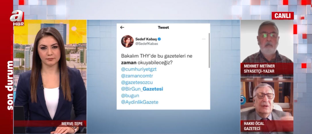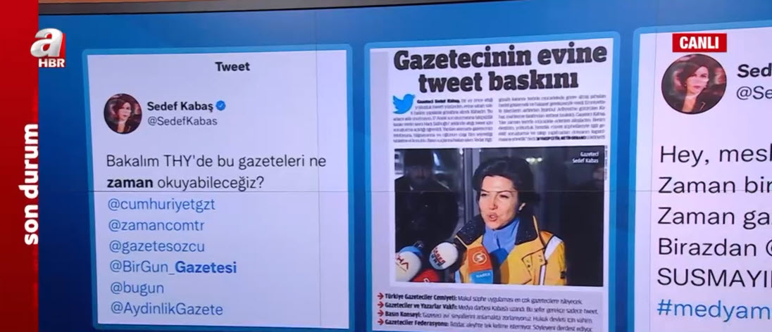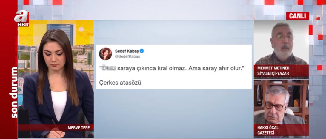 Son dakika haberi... CHP'nin kanalında Başkan Erdoğan'a çirkin sözler sarfeden gazeteci Sedef Kabaş, Cumhurbaşkanlığı makamına ve Başkan Recep Tayyip Erdoğan'a hakaret etmek suçundan tutuklandı. Peki kim bu Sedef Kabaş? Gazetecilik mi yapıyor yoksa tetikçilik mi? Muhalif medyanın küfür siyasetinin kaynağı FETÖ mü? İstanbul 2 Nolu Barosu Yönetim Kurulu Üyesi Avukat Tuba Arslan, TürkMedya Ankara Temsilcisi Melik Yiğitel ve Siyaset Bilimci Onur Erim, A Haber canlı yayınında konu ile ilgili değerlendirmelerde bulundu.