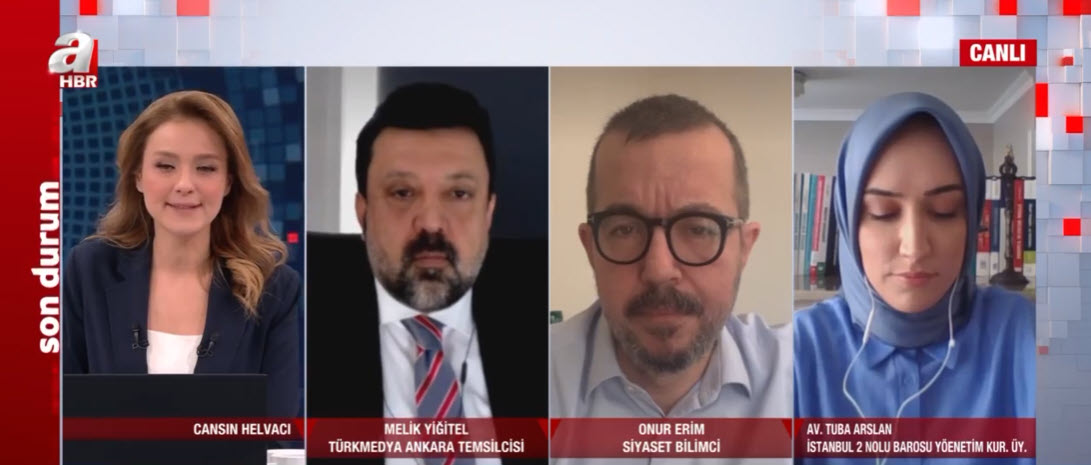 İstanbul 2 Nolu Barosu Yönetim Kurulu Üyesi Avukat Tuba Arslan, TürkMedya Ankara Temsilcisi Melik Yiğitel ve Siyaset Bilimci Onur Erim, A Haber canlı yayınında konu ile ilgili değerlendirmelerde bulundu.