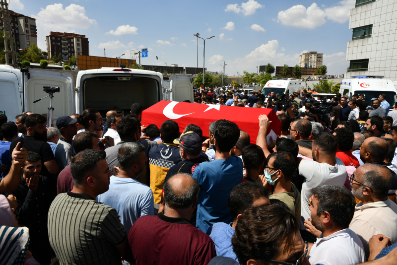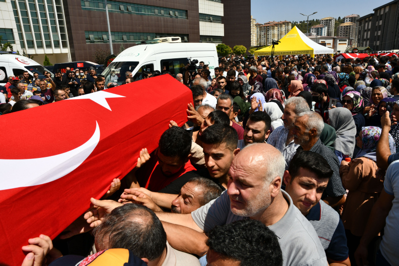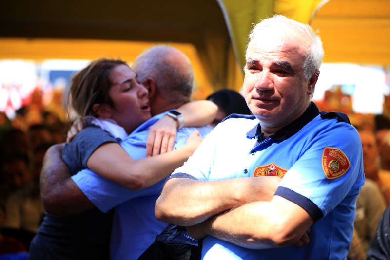 İl Müftüsü Hüseyin Hazırlar'ın dua okuduğu törende, vefat edenlerin özgeçmişleri de okundu. Ölenlerin Türk bayraklarına sarılı naaşları, meslektaşlarının omuzlarında cenaze araçlarına taşındı.