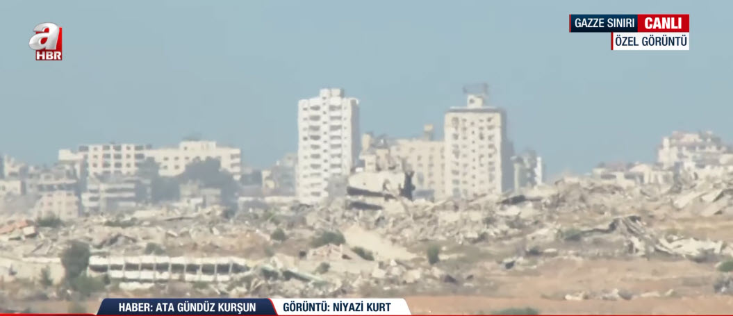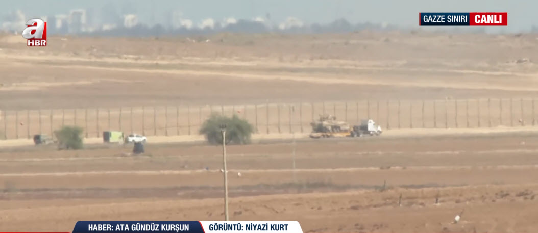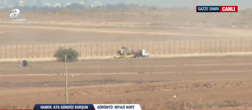 Biraz daha şöyle beride araçlar görüyoruz, tırları görüyoruz ve tırların üzerinde de birkaç zırhlı araç var. Anladığımız kadarıyla İsrail ordusu halen daha bu çekilmeyi tamamlayabilmiş değil. Hatırlanacağı gibi ateşkes süreci ile birlikte o ateşkes imzalandığı zaman da biz yine buradaydık ve yine böyle ufaktan zırhlı araçların, işte tankların çıkışını sizlerle paylaşmıştık ama halen daha aradan 3-5 gün geçti neredeyse, araçların çıkışını işte A Haber canlı yayınında sizlerle paylaşıyoruz.
