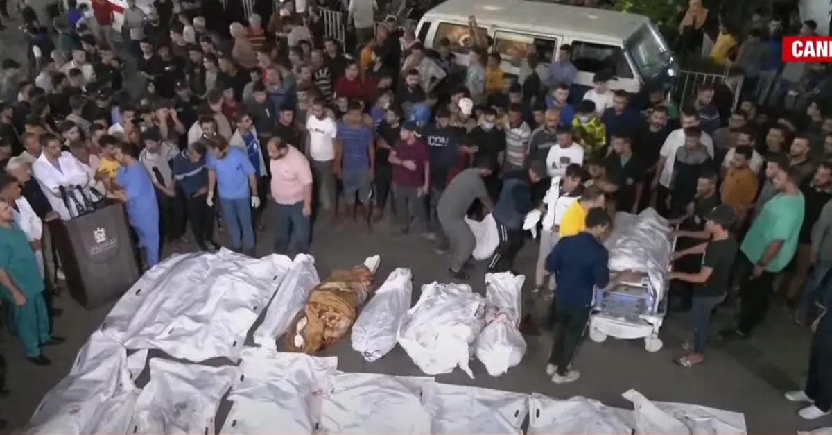 Gazze'de insanlık ölüyor. İsrail sivilleri vurdu, hastane önünde cenaze namazı kılındı. Görüntüler kan dondurdu. Gazzeli gazeteci Ömer Ensar, A Haber canlı yayınında bölgedeki son durumu aktardı.