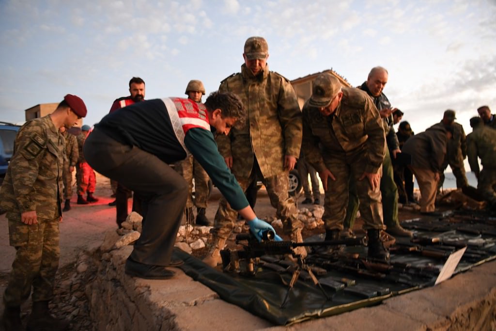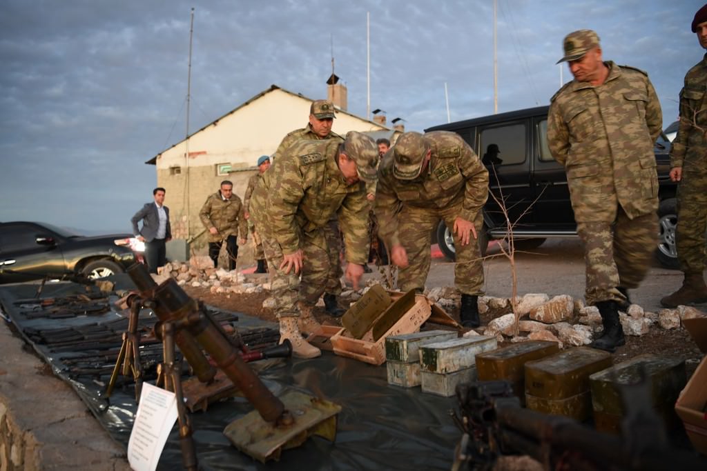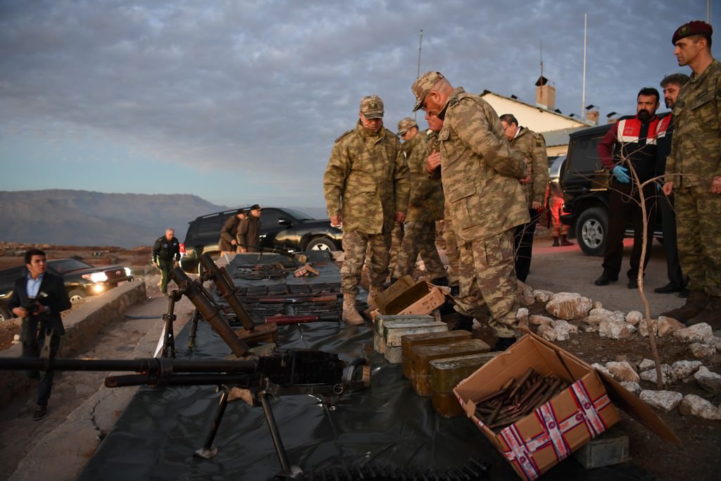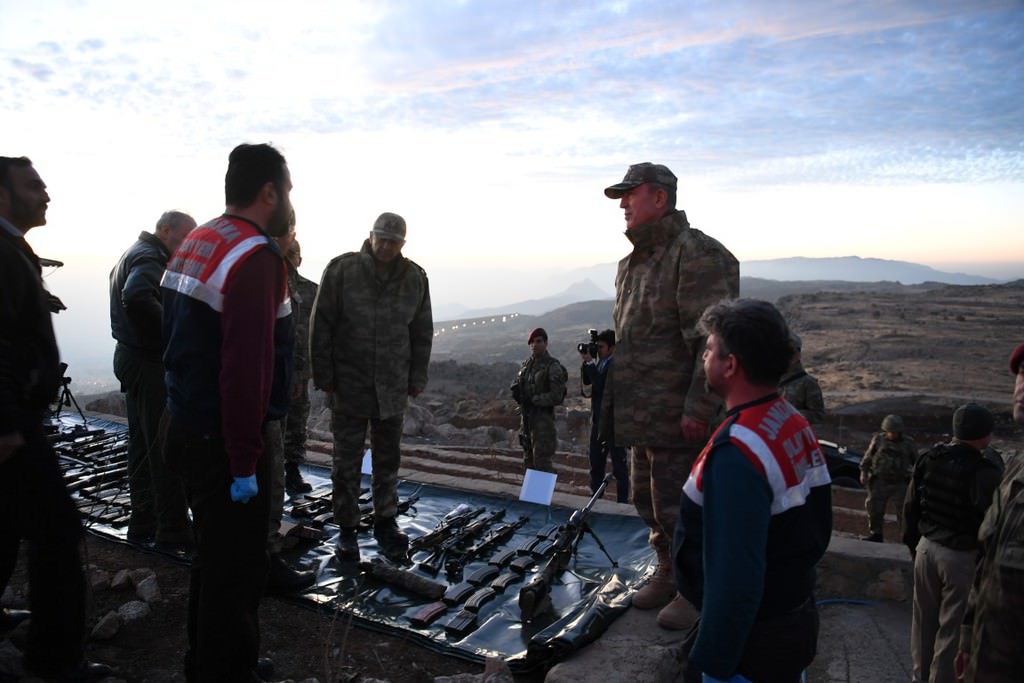 Operasyonlarda ele geçirilen silah, mühimmat ve yaşam malzemelerini inceleyen Orgeneral Akar, sınır bölgelerinde yapılan hazırlıklar, bölgede yürütülen büyük çaplı operasyonlarla ilgili bilgi aldı.