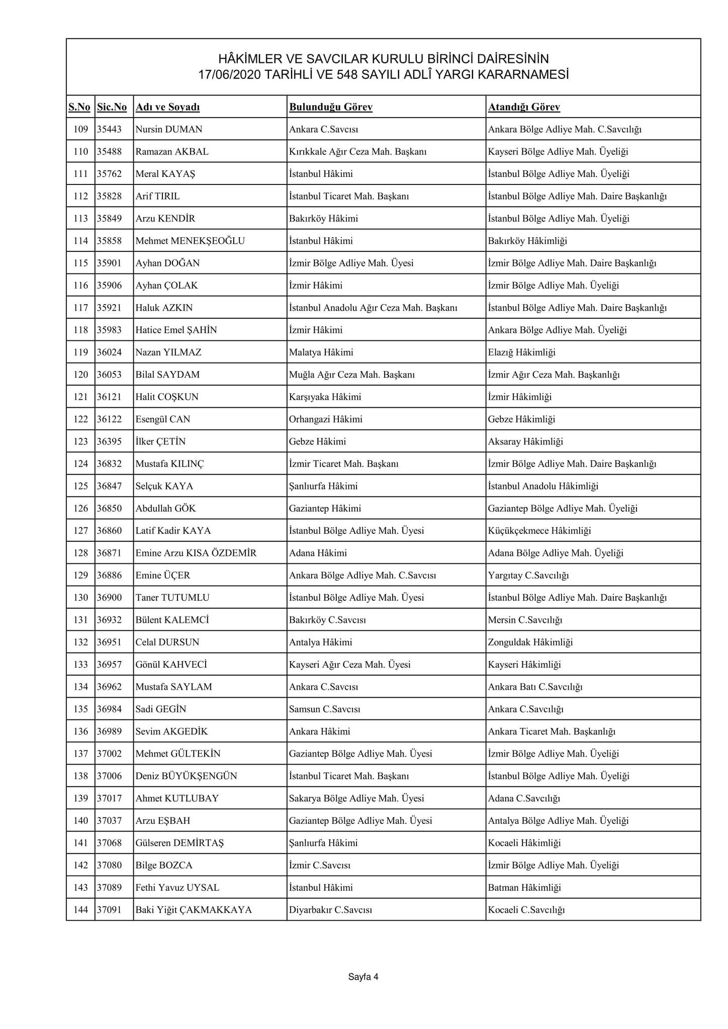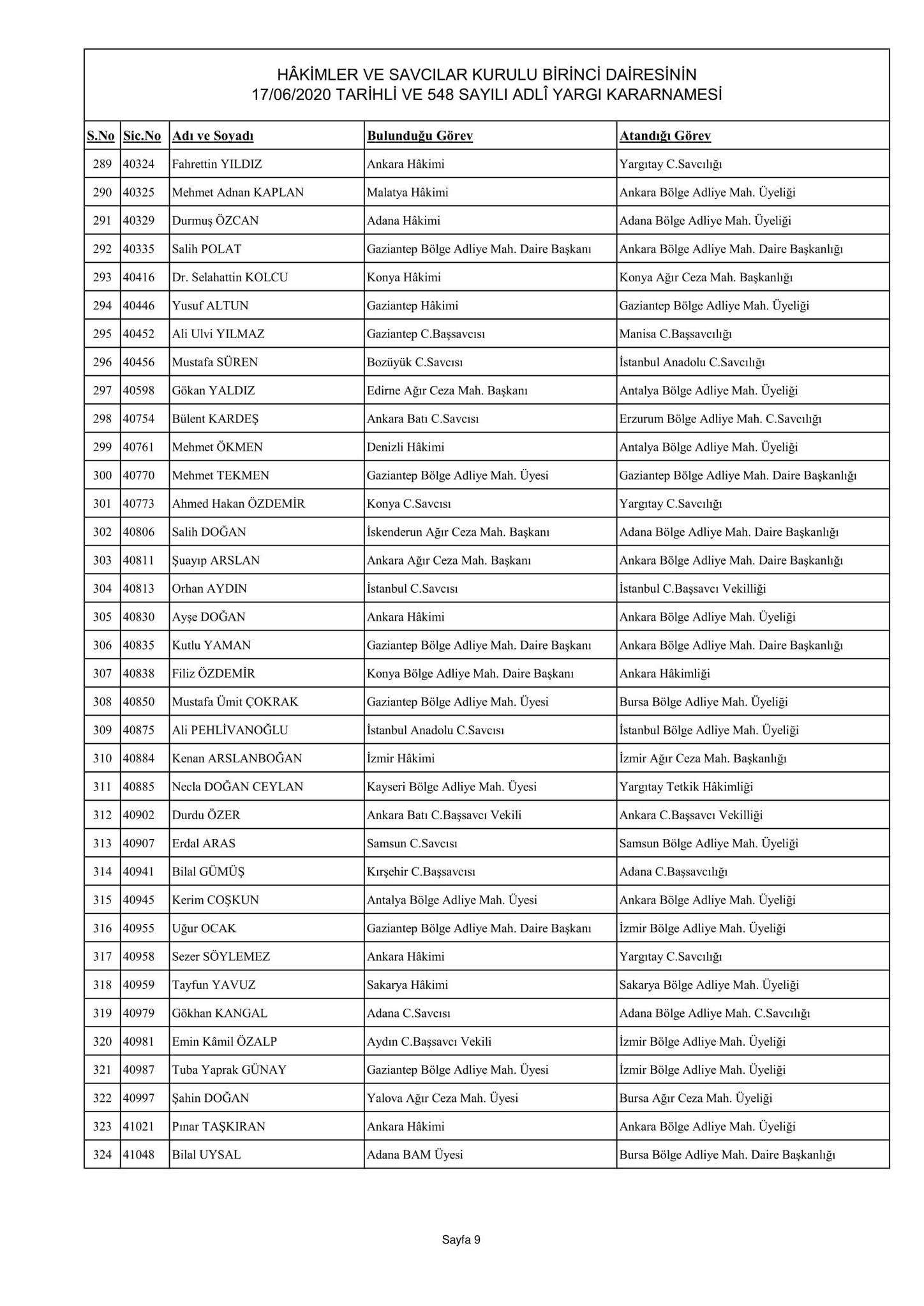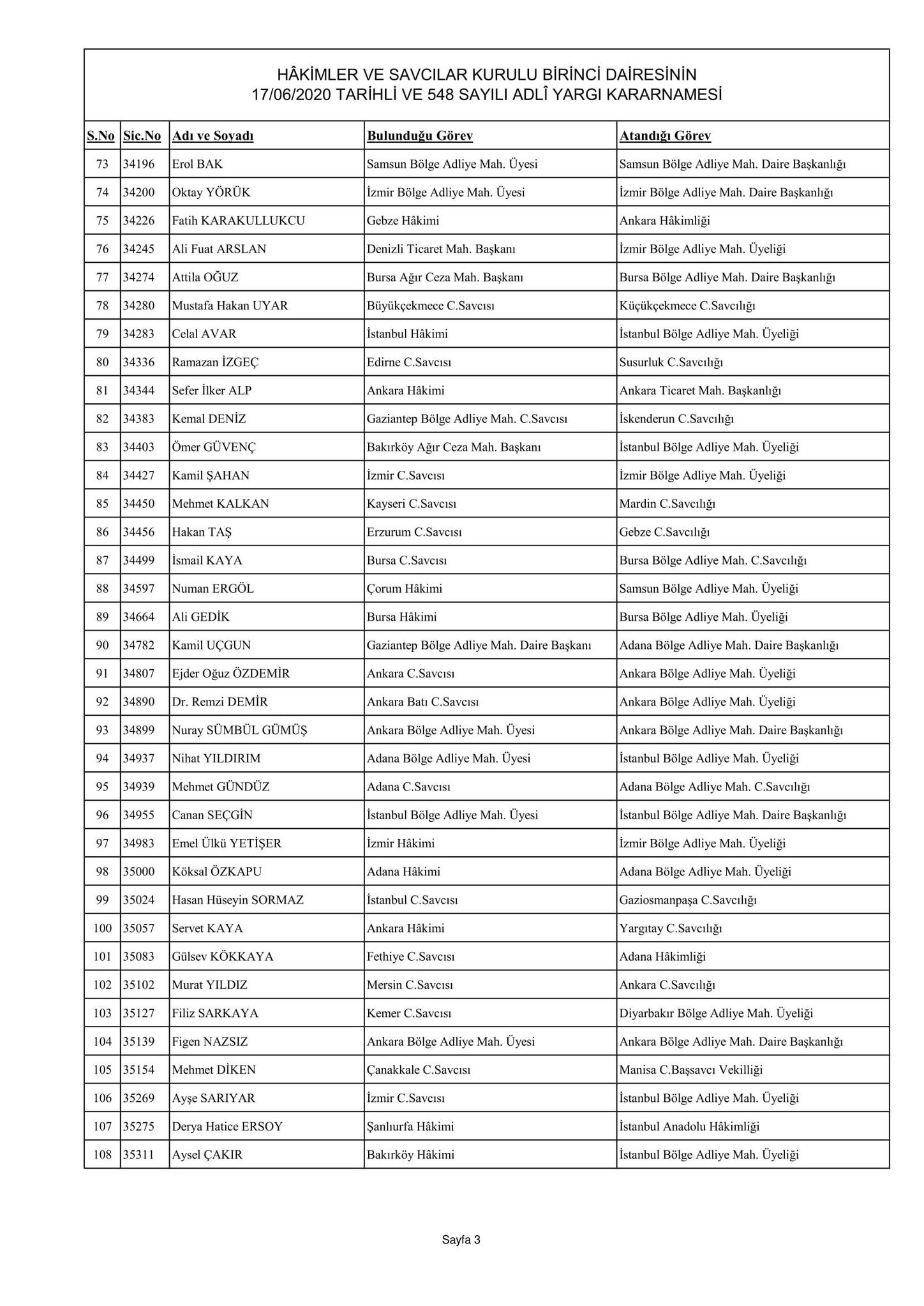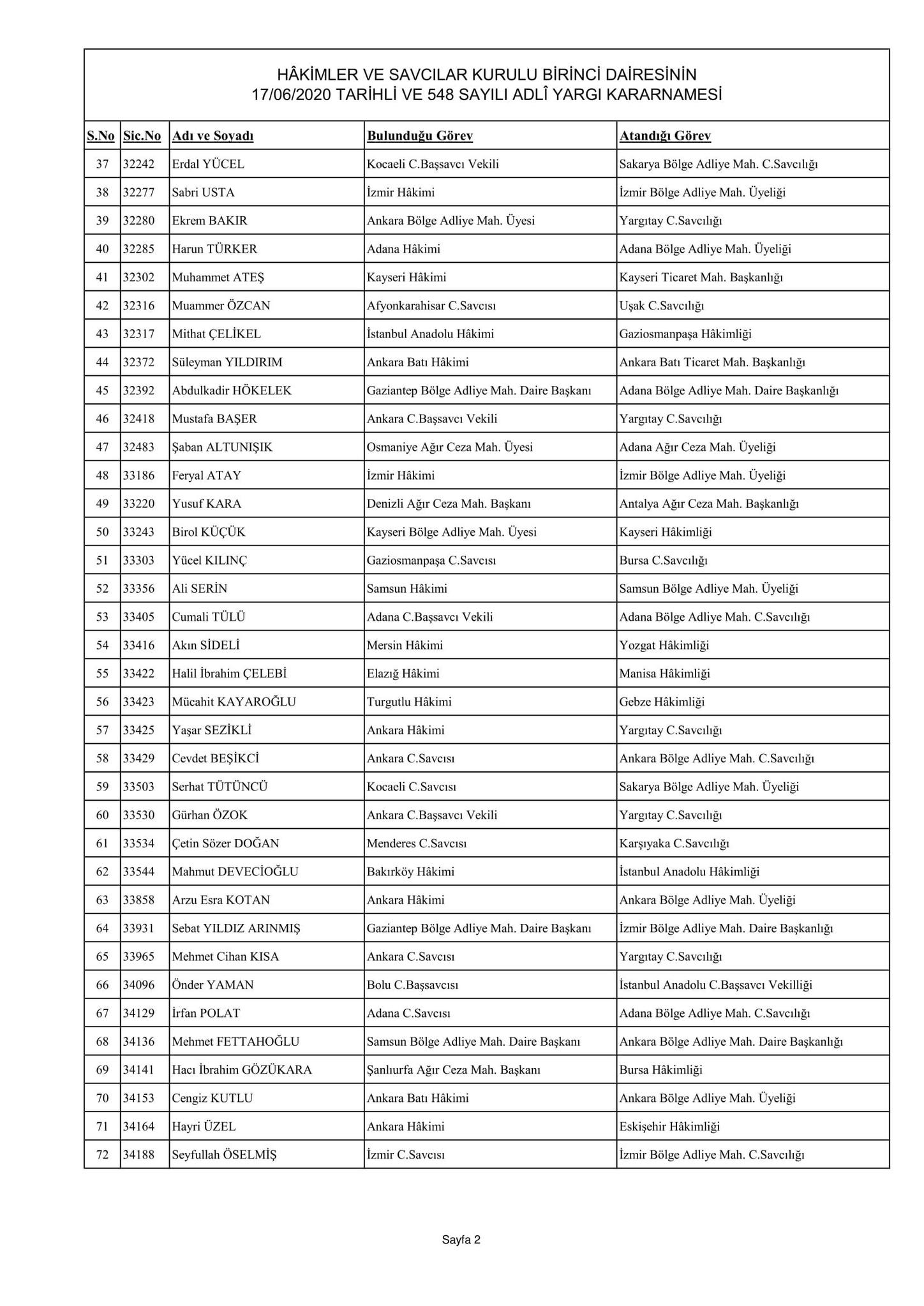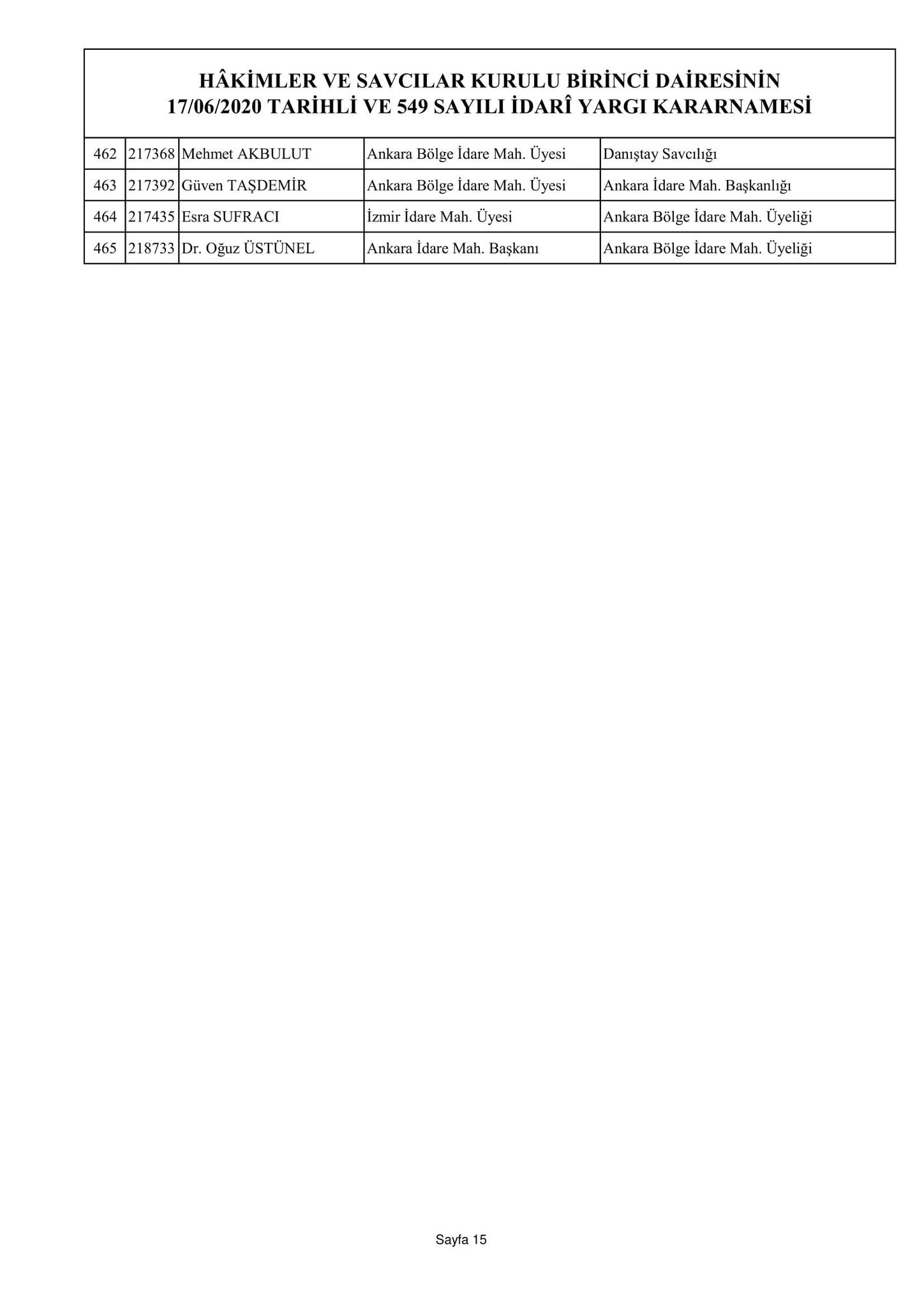 Hakimler ve Savcılar Kurulu birinci dairesinin 17/06/2020 tarihli ve 548 sayılı adli yargı kararnamesi
