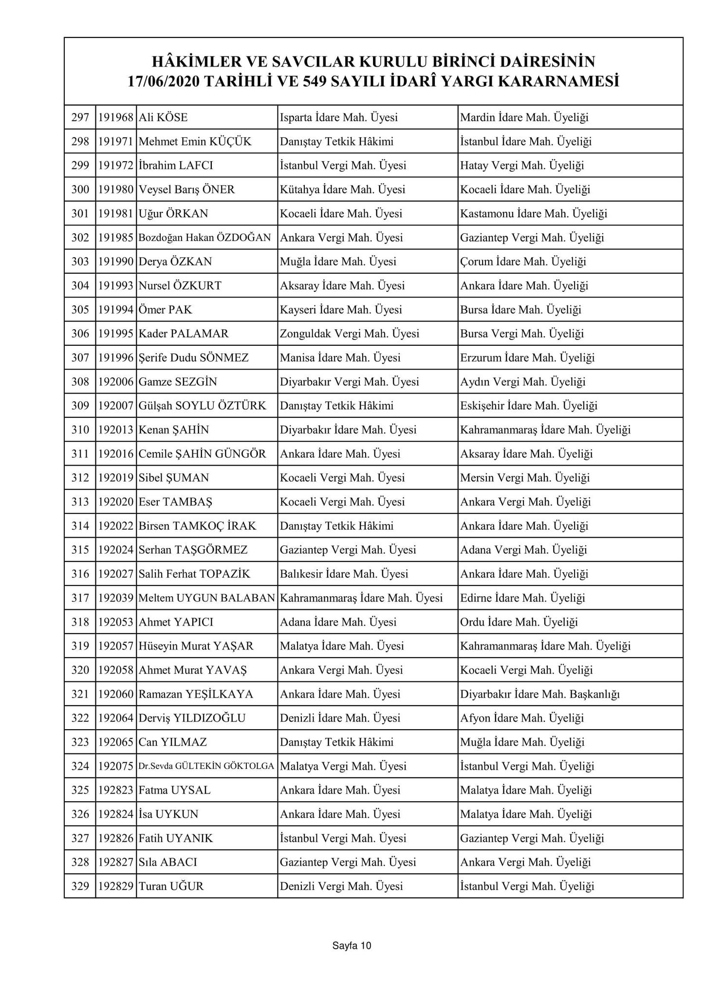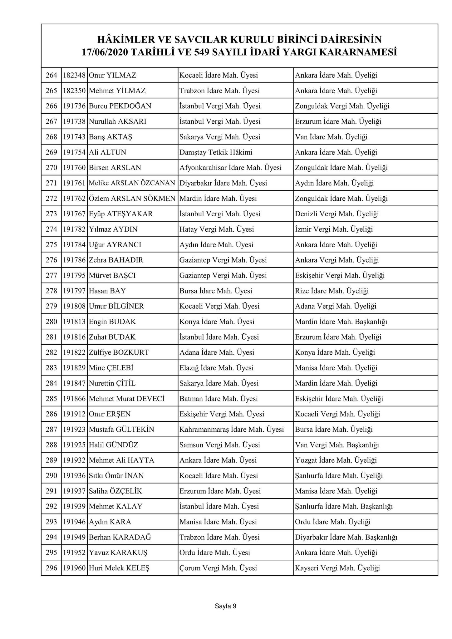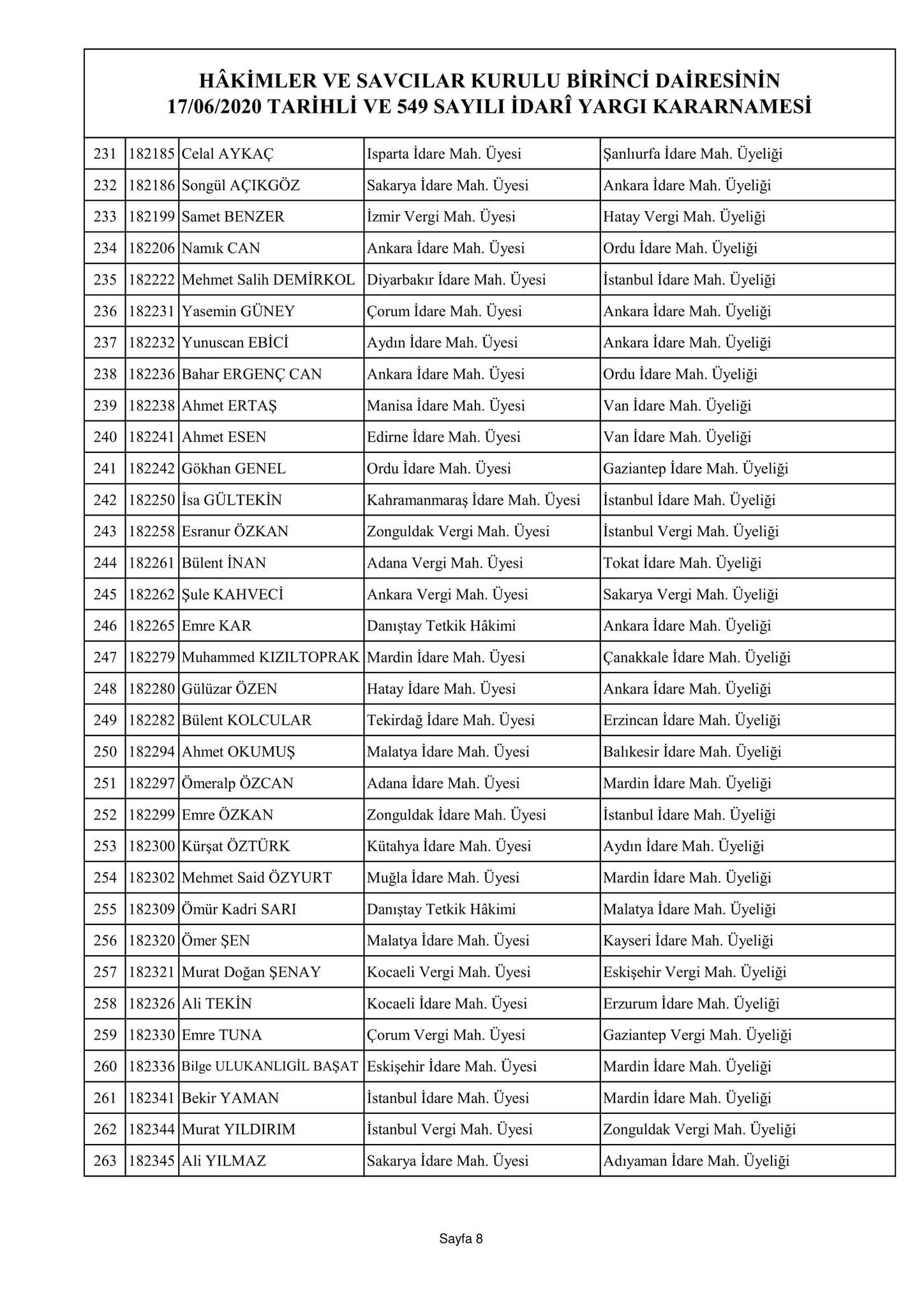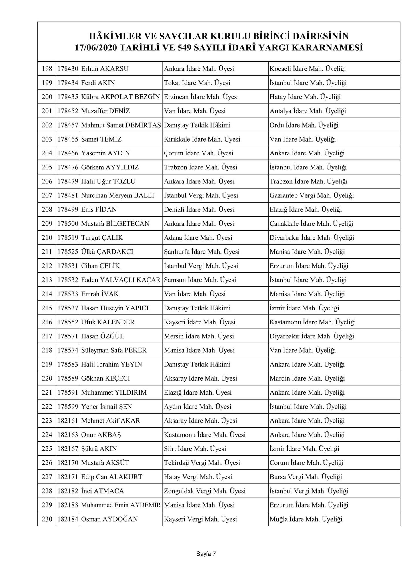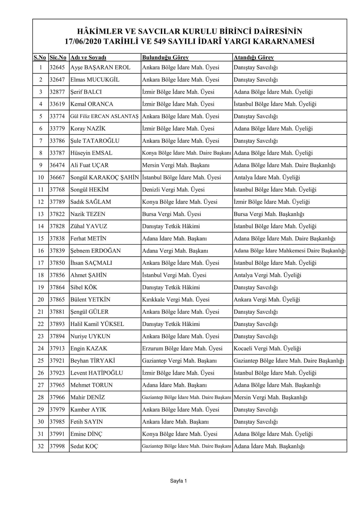 Hakimler ve Savcılar Kurulu birinci dairesinin 17/06/2020 tarihli ve 548 sayılı adli yargı kararnamesi