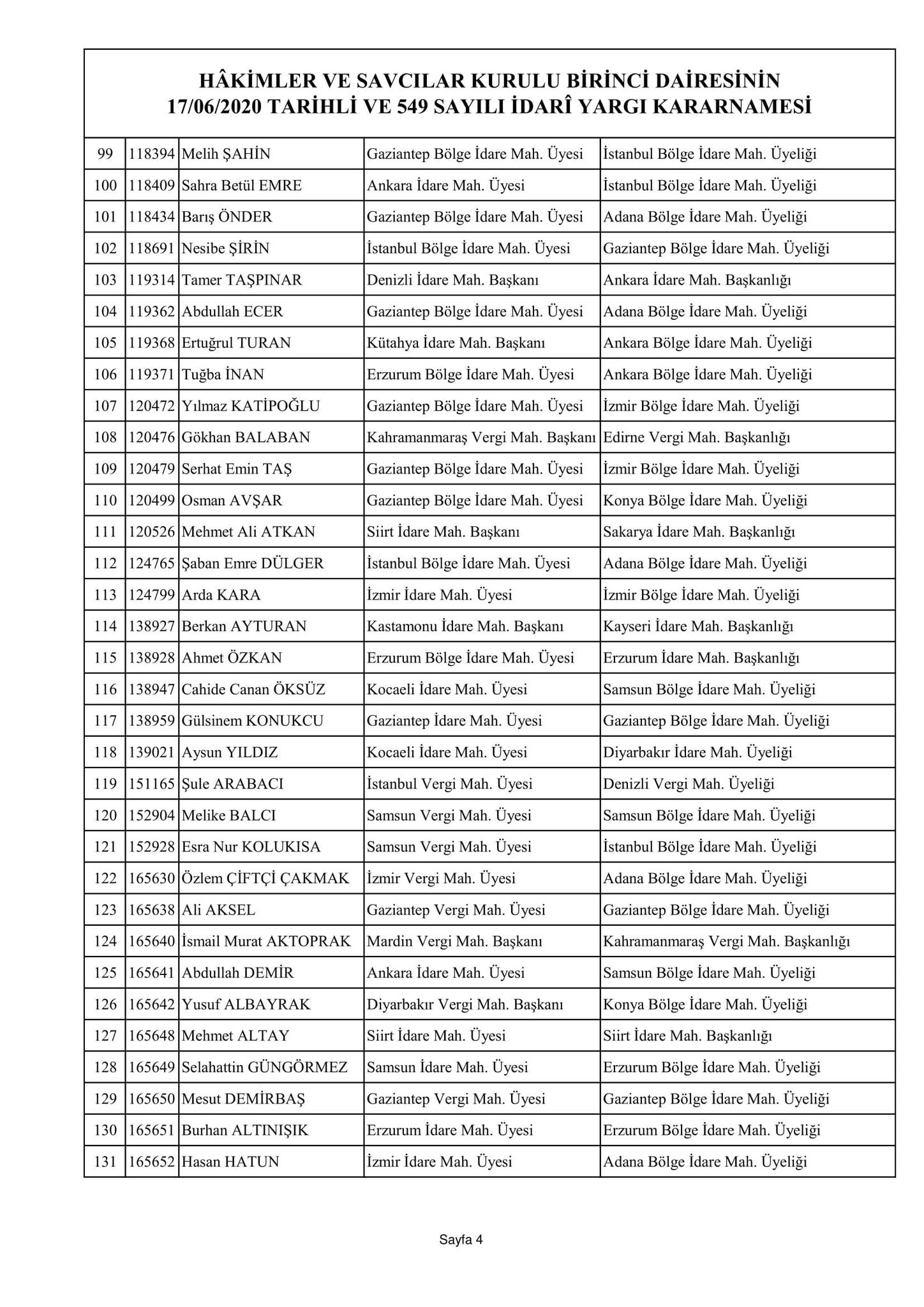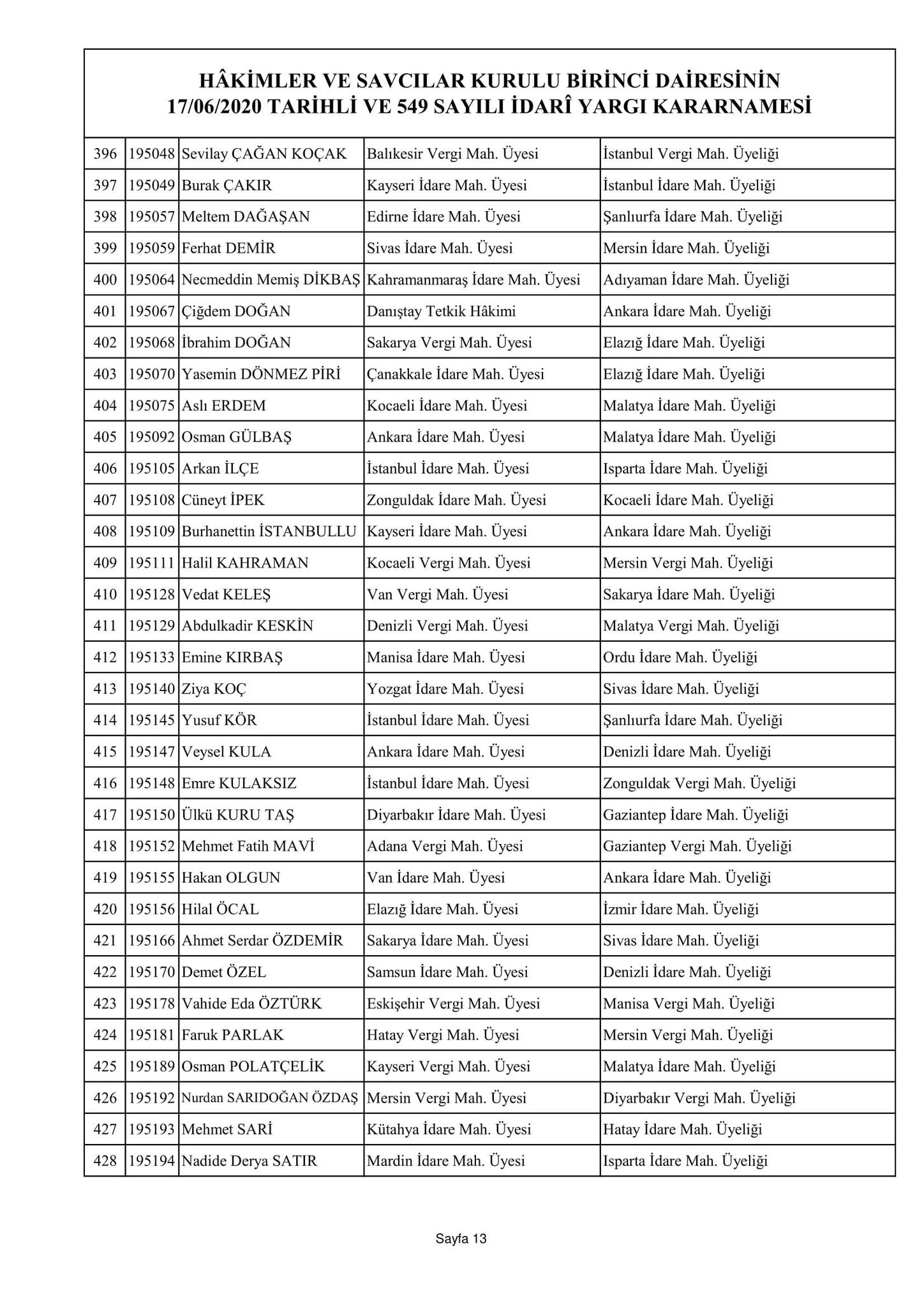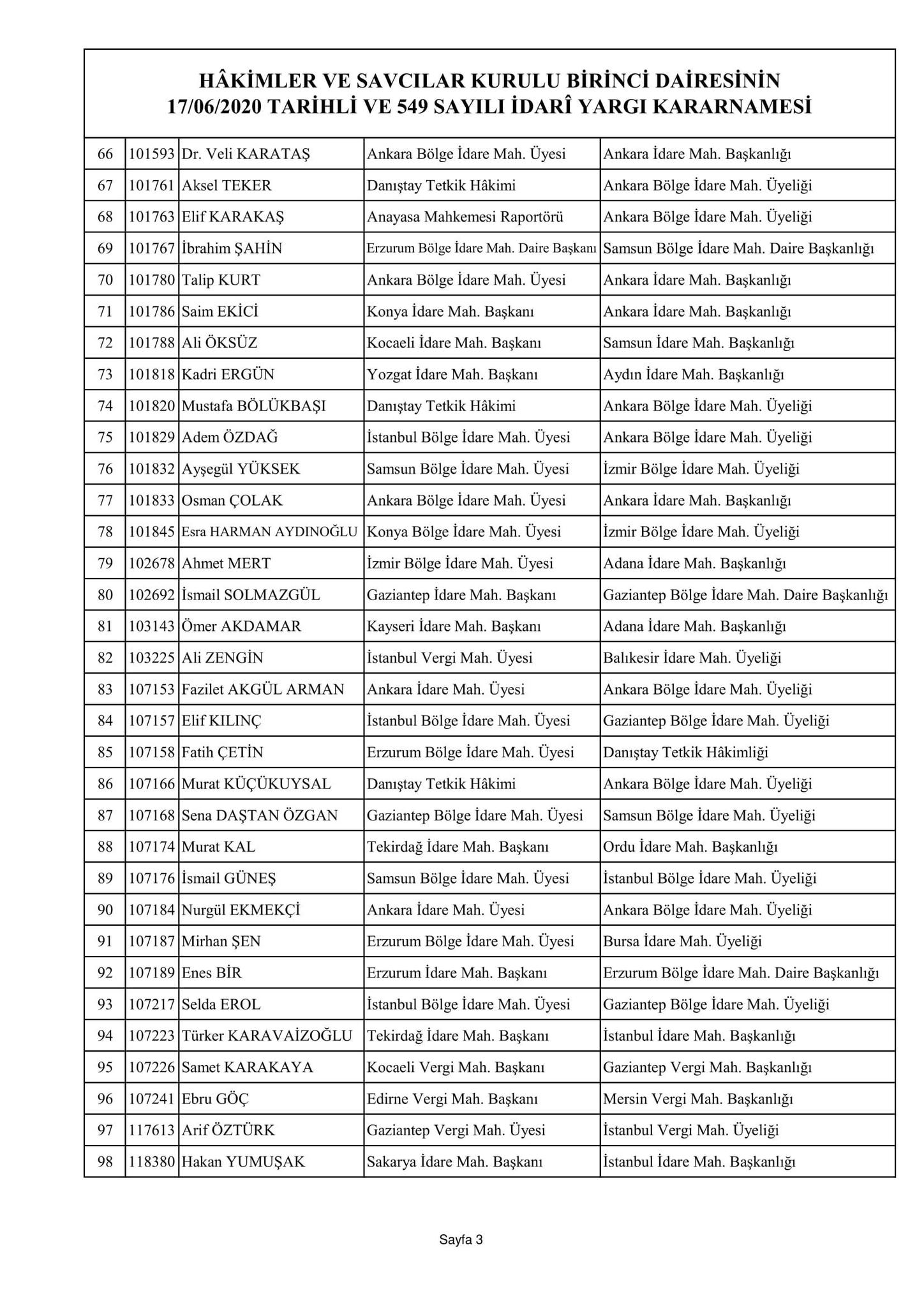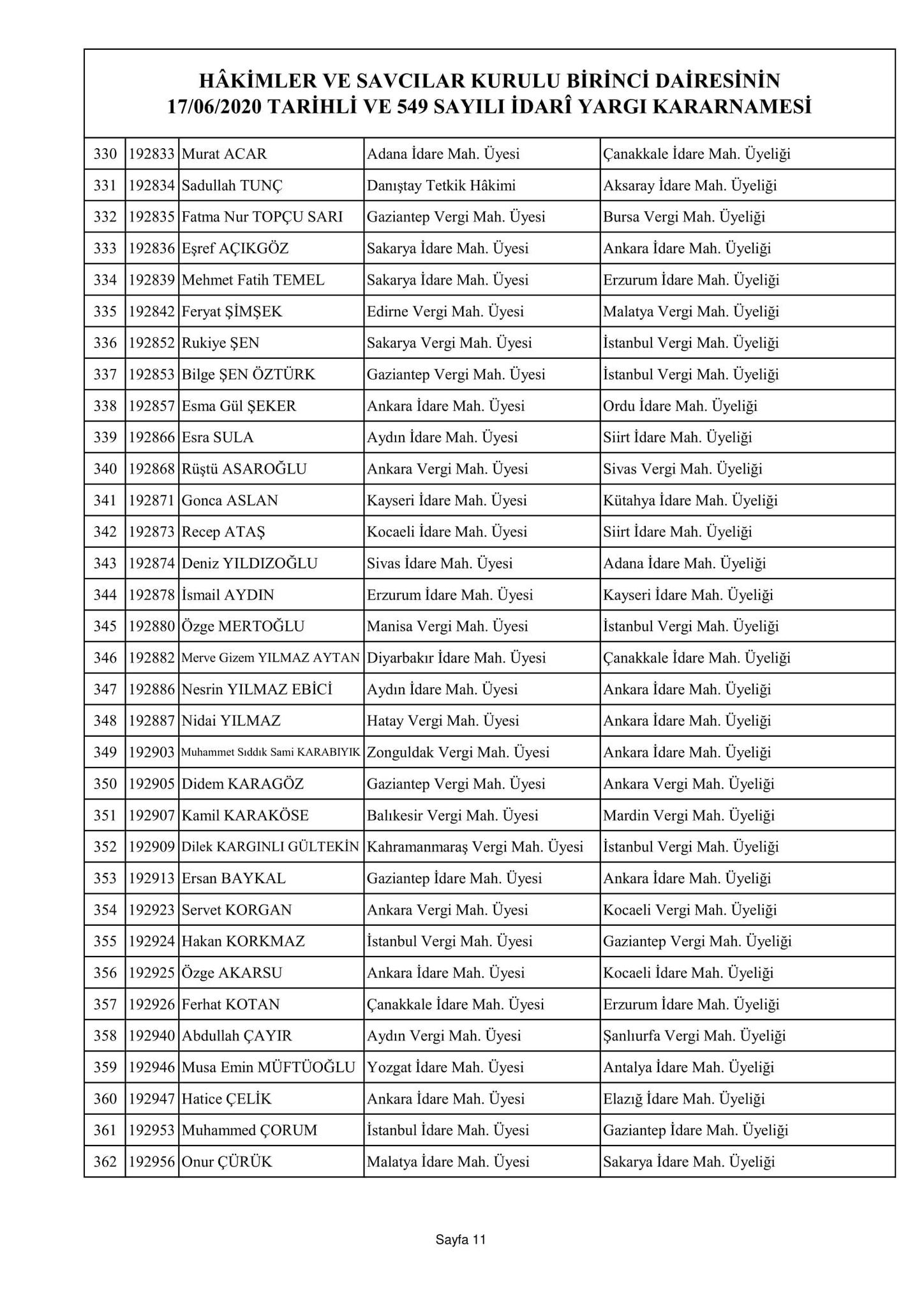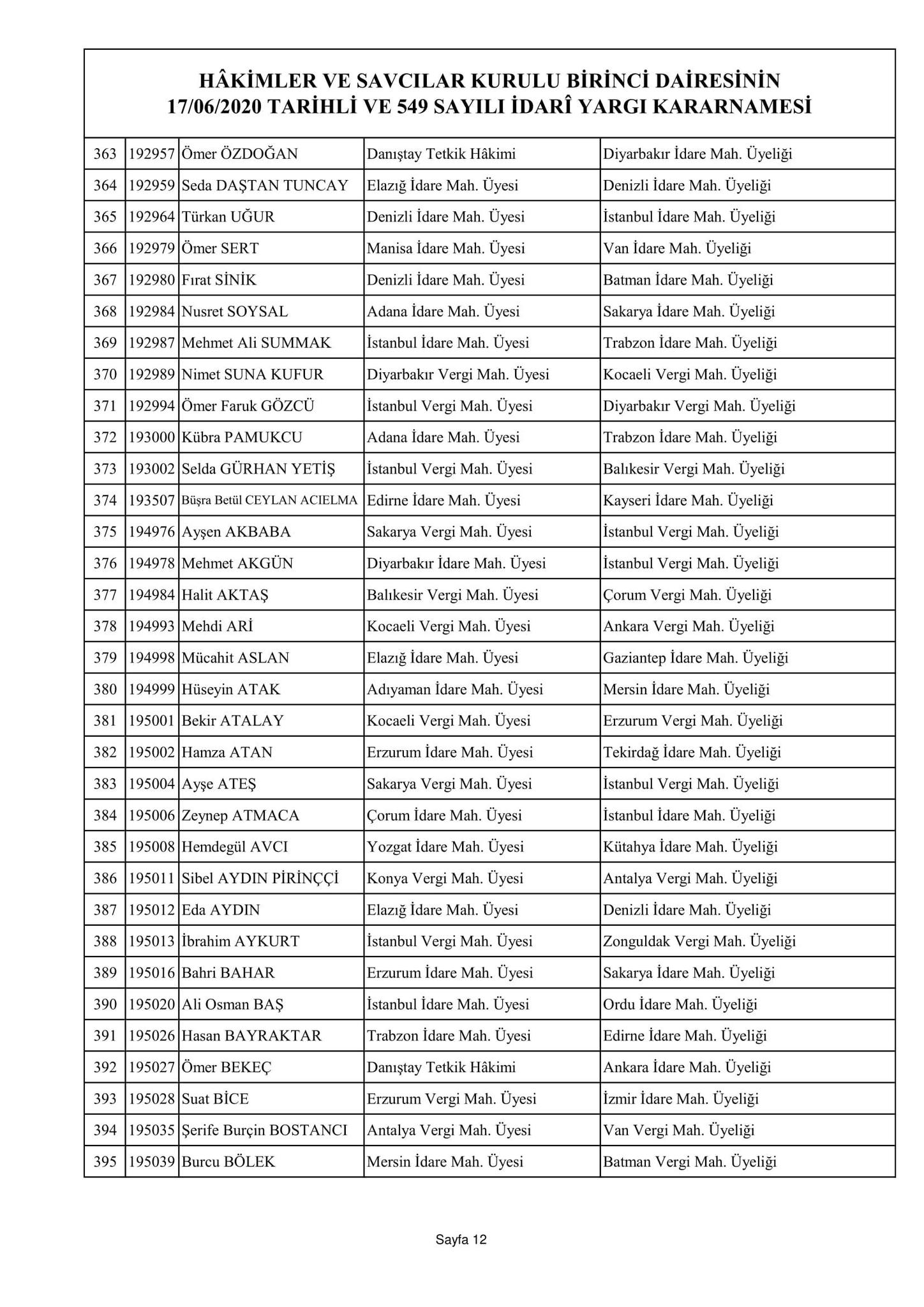 Hakimler ve Savcılar Kurulu birinci dairesinin 17/06/2020 tarihli ve 548 sayılı adli yargı kararnamesi