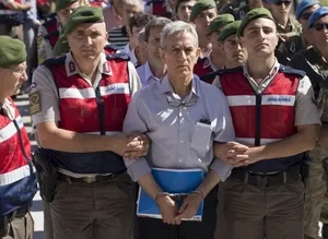 Darbe girişimini yönettikleri belirtilenlerin de olduğu 41 sanık, duruşmanın yapılacağı salona, hakim ve savcıların da giriş yaptığı kapıdan alındı.