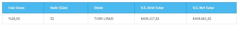 32 GÜNLÜK VADELİ MEVDUAT HESABI FAİZ ORANI