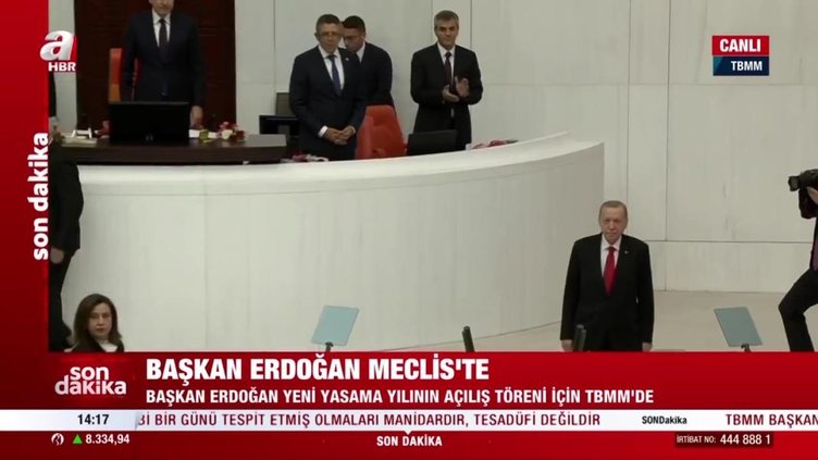 Başkan Recep Tayyip Erdoğan, yeni yasama yılı açılışı dolayısıyla Türkiye Büyük Millet Meclisi'ne (TBMM) geldi. Başkan Erdoğan, konuşma yapmak için Genel Kurul'a giriş yaptığı sırada CHP ve HDP'li milletvekillerinin ayağa kalkmadığı görüldü. 14 ve 28 Mayıs seçimlerinde koalisyon uğruna ittifak yapan iki partinin milletin iradesini hiçe sayan bu tavrı büyük tepki topladı.