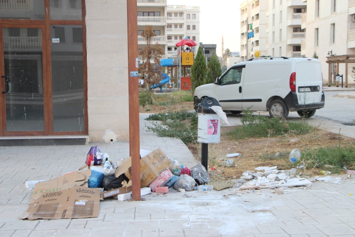 Terör örgütü PKK'nın 2015-2016 yıllarında hendek ve barikat eylemleri sırasında evleri yıkılanlar için TOKİ'nin inşa ettiği konutlarda yaşayanlar, HDP'li Nusaybin belediyesinin çöp toplamamasına tepkili.