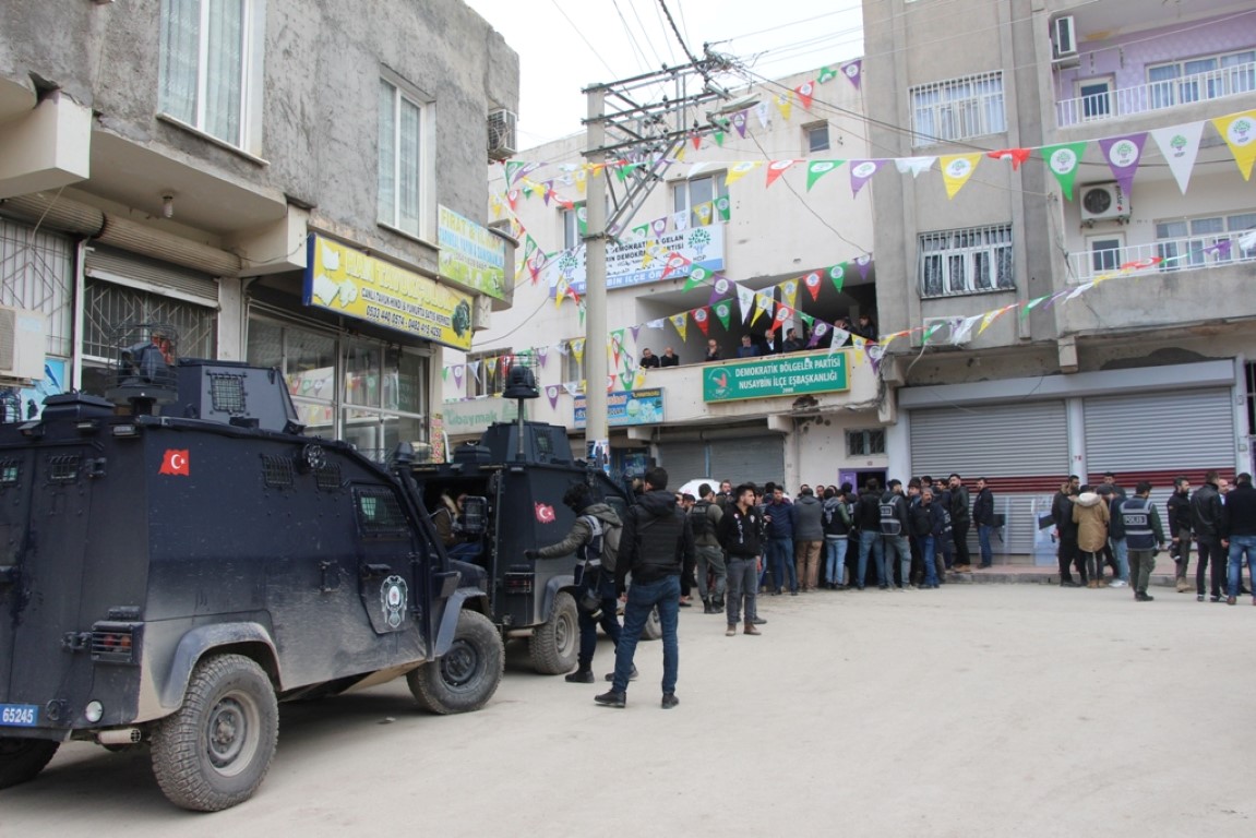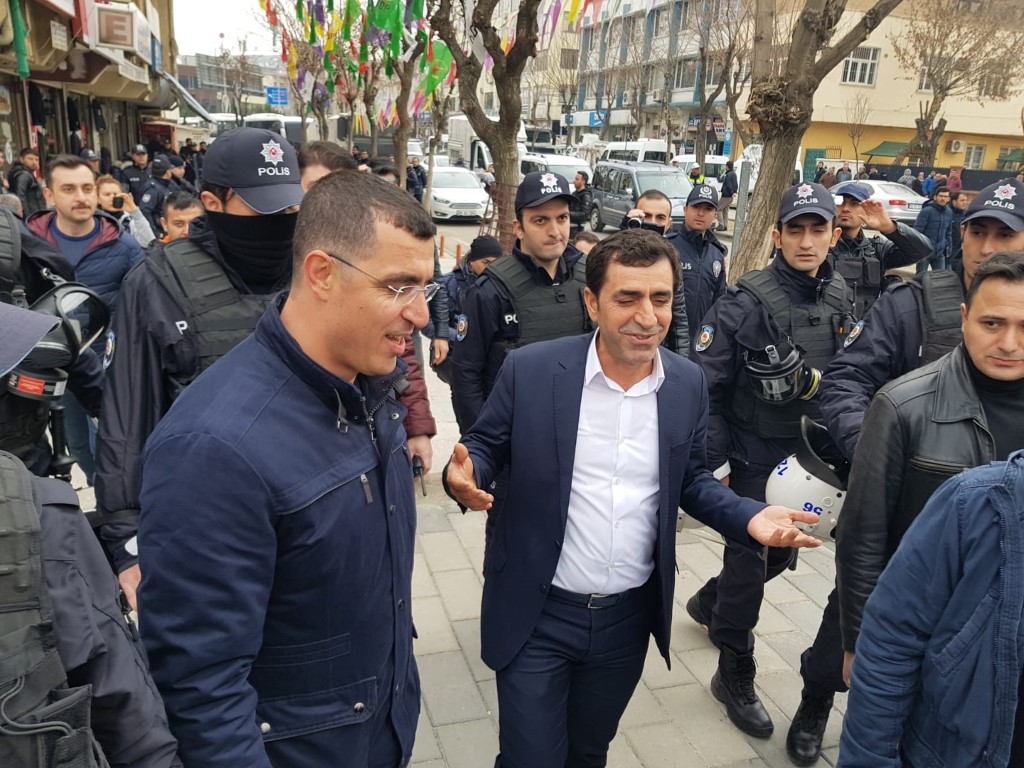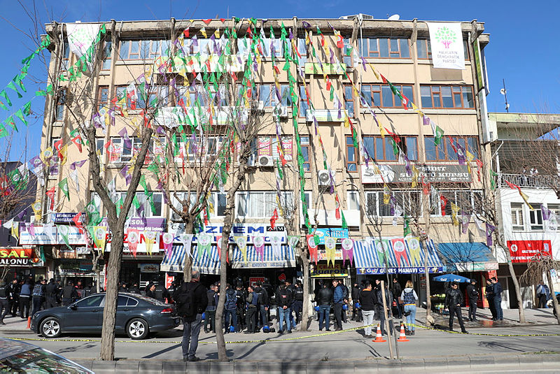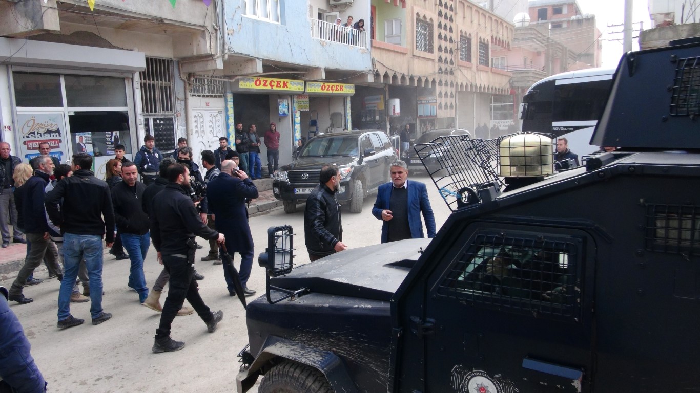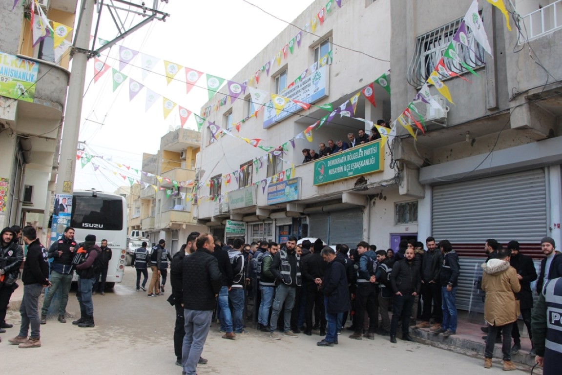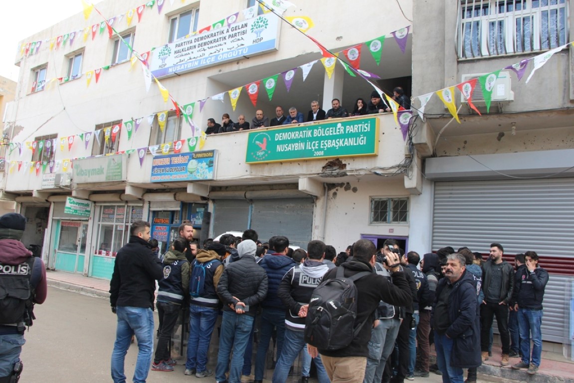 Mardin'in Nusaybin ilçesinde HDP milletvekilleri Hasan Özgüneş, Hüseyin Kaçmaz, Nuran İmir, Pero Dündar, Ebru Günay ve Tuma Çelik ilçe binasında bir araya geldi.