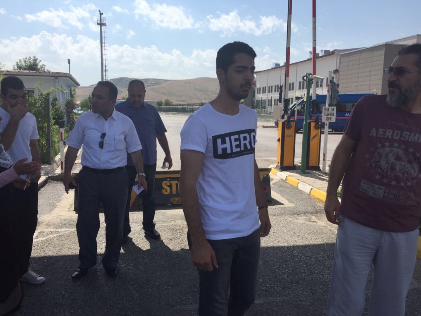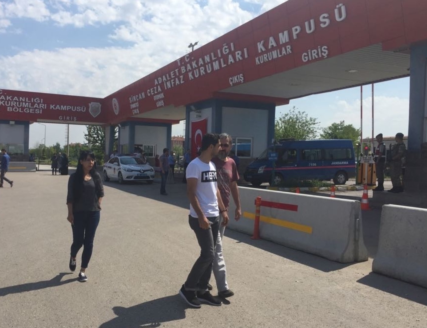 Ankara'da üzerinde "Hero (Kahraman)" yazılı tişörtle, Polatlı darbe davasının görüldüğü Sincan Cezaevindeki duruşma salonuna girmek isteyen bir sanık yakını gözaltına alındı.