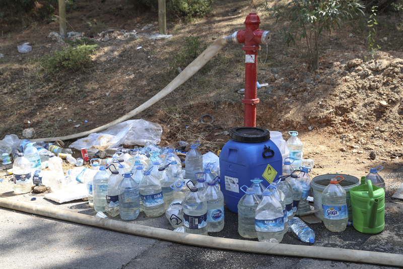 Öte yandan ormanlık alanlara girişlerin yasaklandığını belirten pankartlar birçok yere asılırken, vatandaşların hazırladığı su dolu şişeler de yol kenarında bekletiliyor.