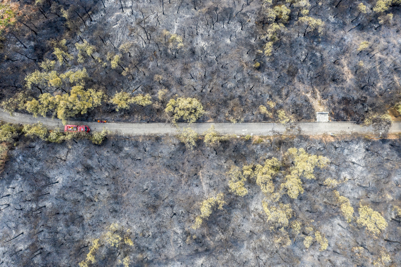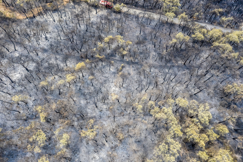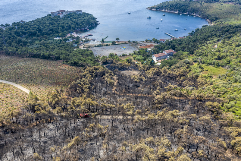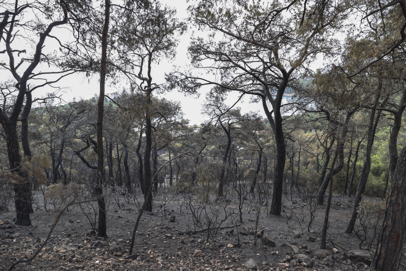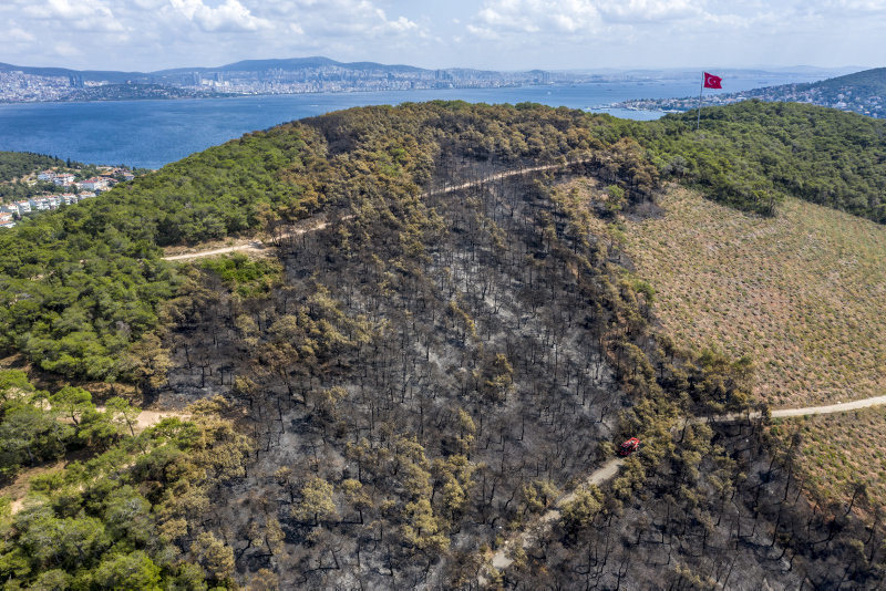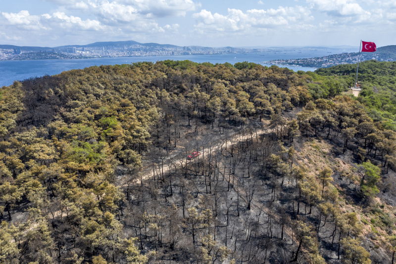 Heybeliada'da iki gün önce çıkan ve ekiplerin müdahalesiyle söndürülen yangında zarar gören alan, havadan görüntülendi. Öte yandan yangının çıkış sebebine ilişkin soruşturma sürüyor.