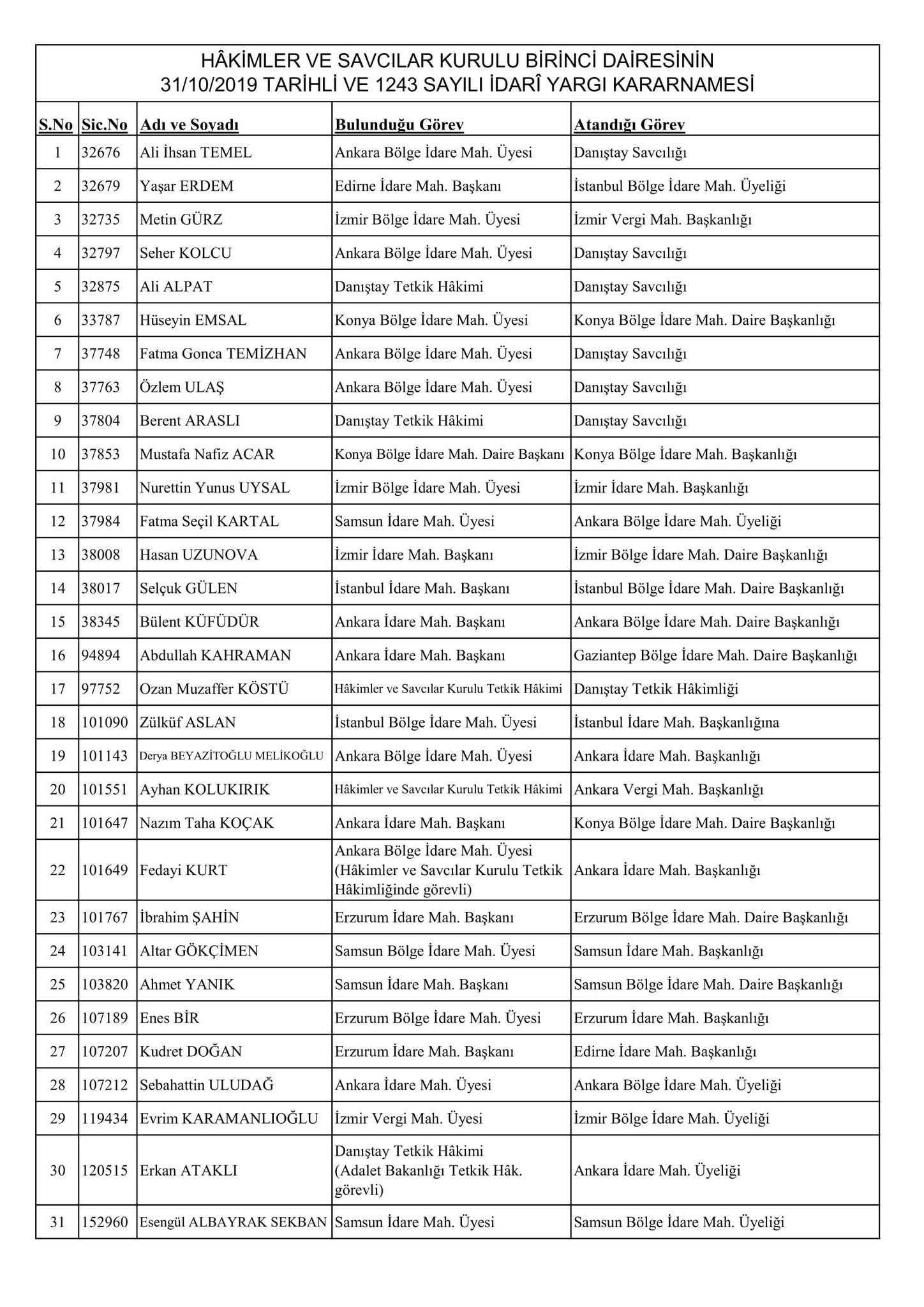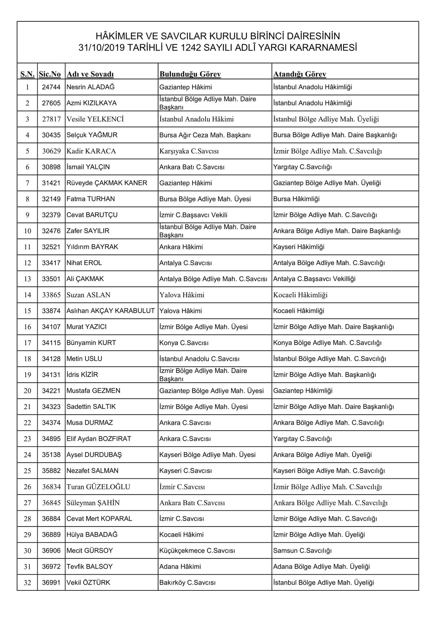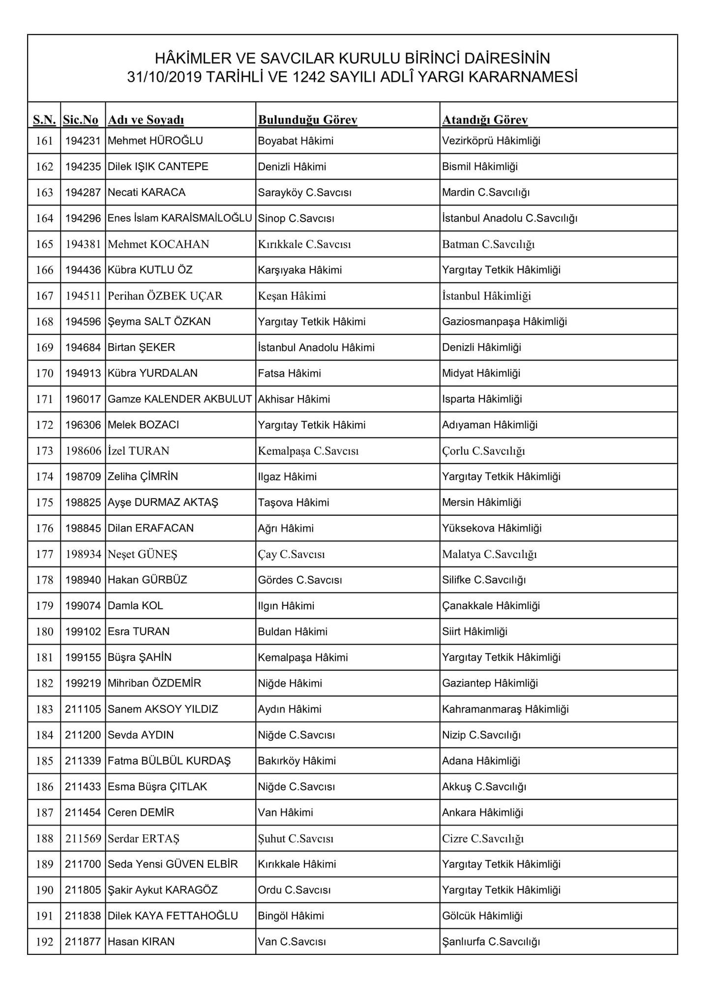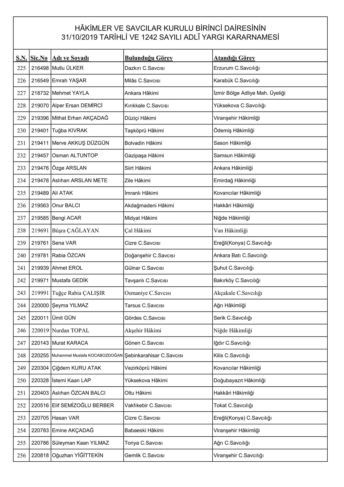 HSK'nın resmi sitesi üzerinden yayınlanan kararnamede merak edilen görevlere atanan isimler de belli oldu. Kararname, 256 Adli Yargı Hakim ve Cumhuriyet Savcısı ile 51 İdari Yargı Hakim ve Savcısını kapsıyor.