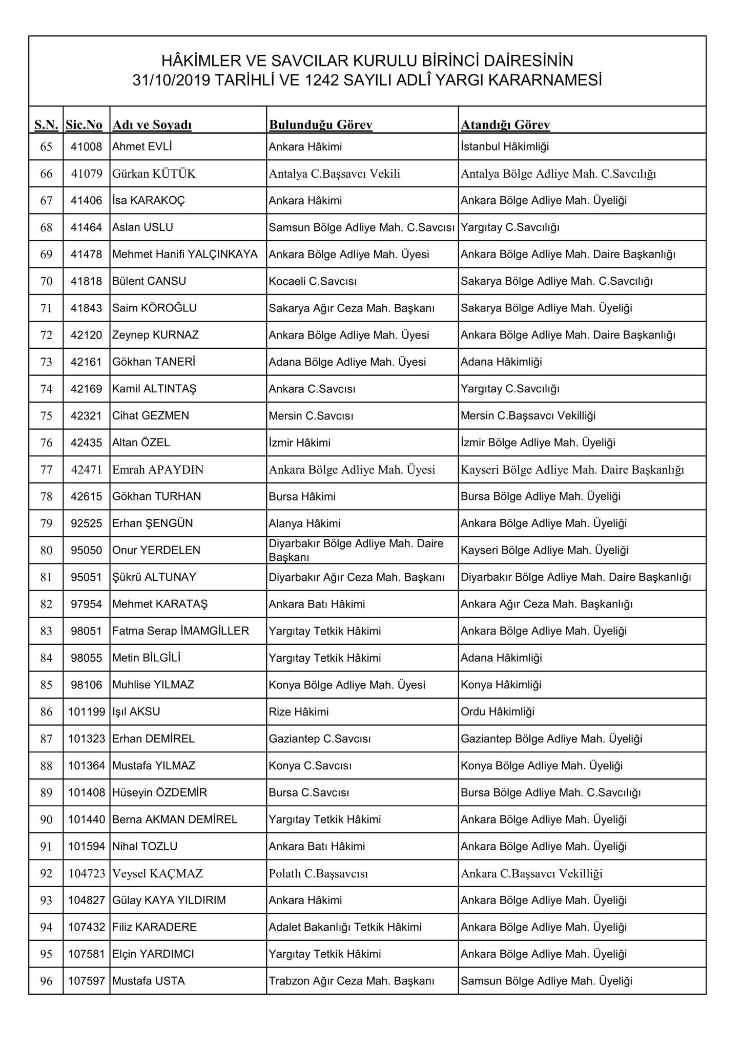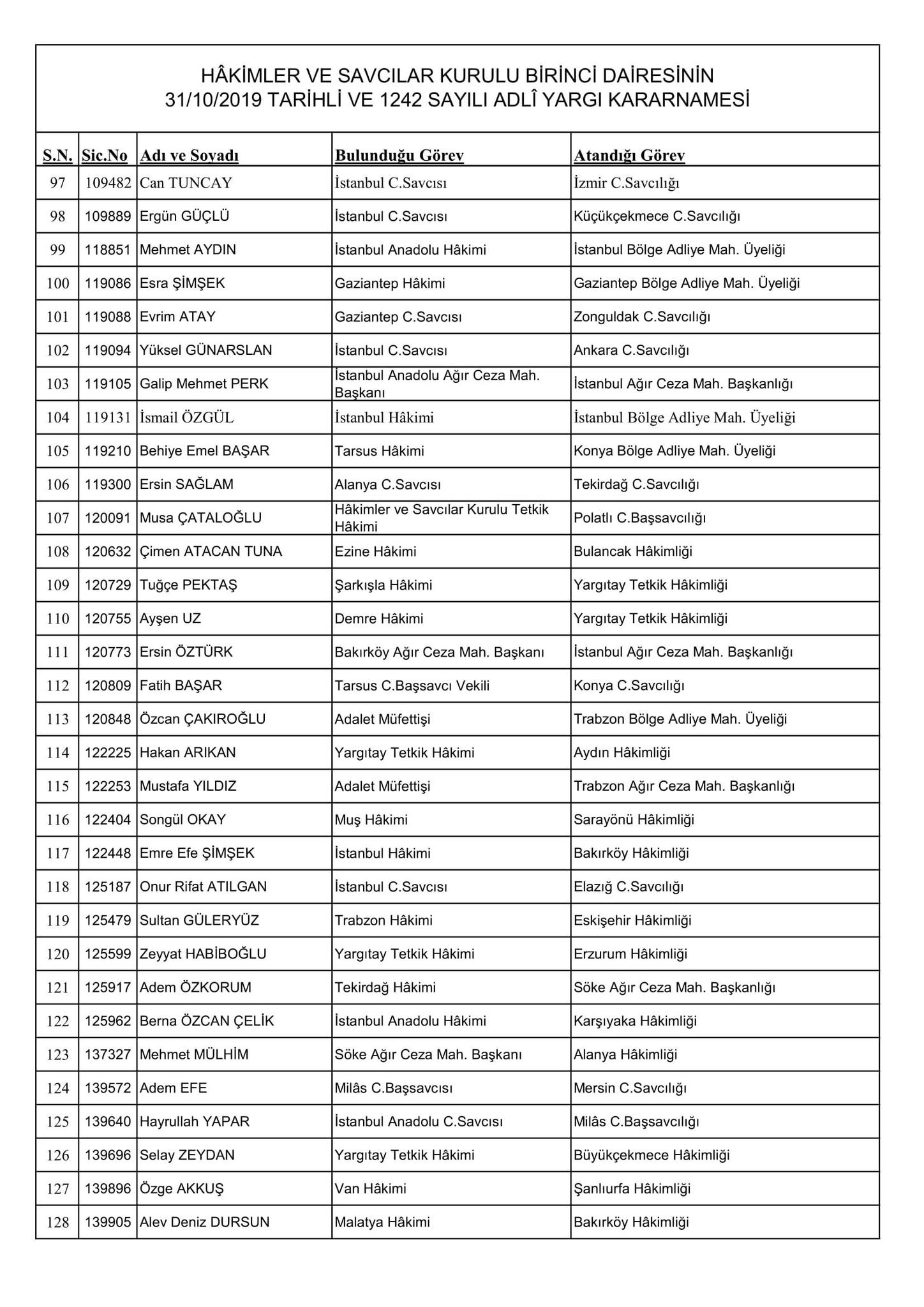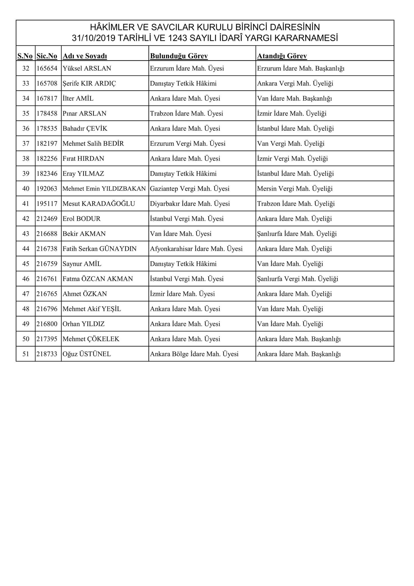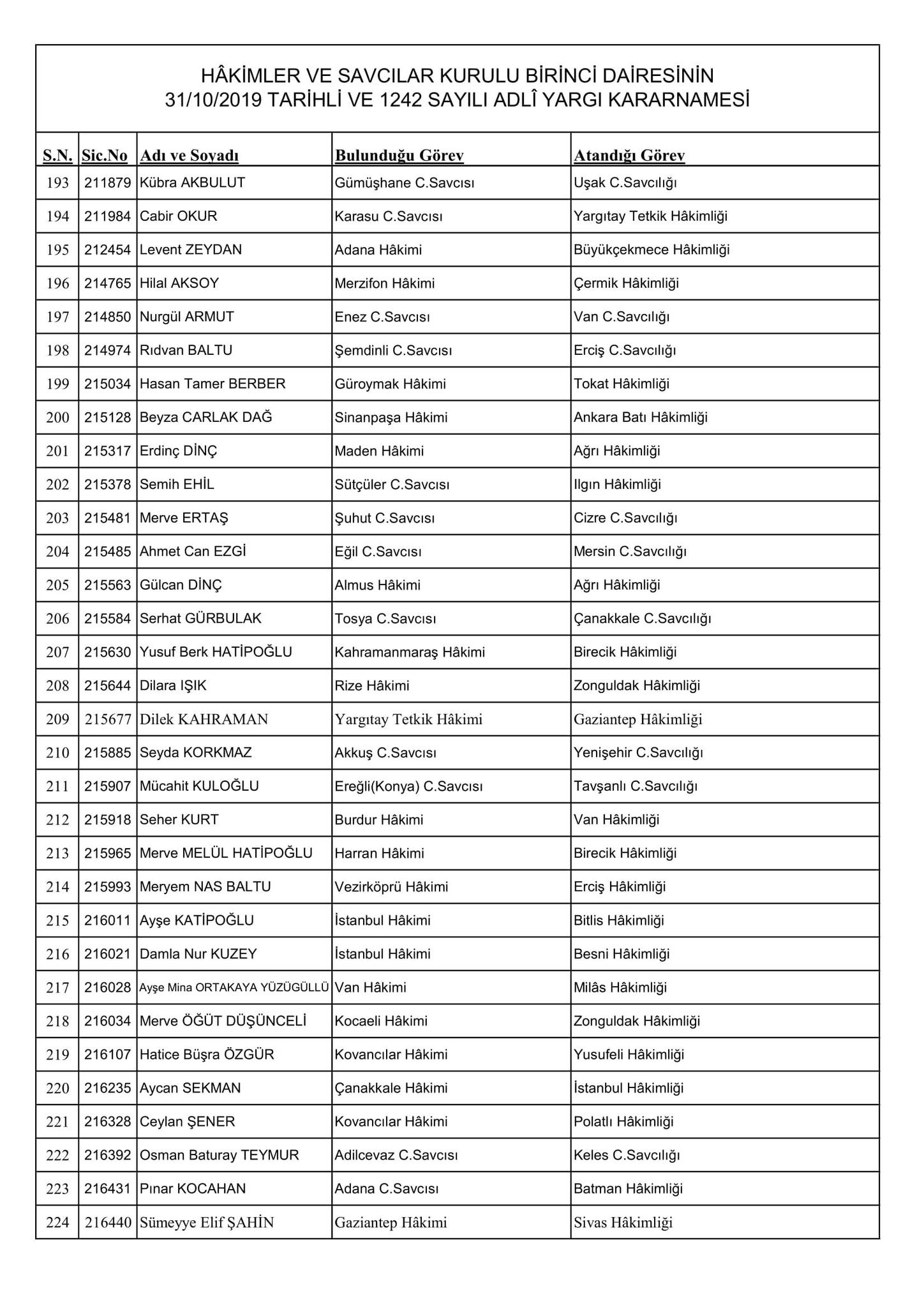 HSK'nın resmi sitesi üzerinden yayınlanan kararnamede merak edilen görevlere atanan isimler de belli oldu. Kararname, 256 Adli Yargı Hakim ve Cumhuriyet Savcısı ile 51 İdari Yargı Hakim ve Savcısını kapsıyor.