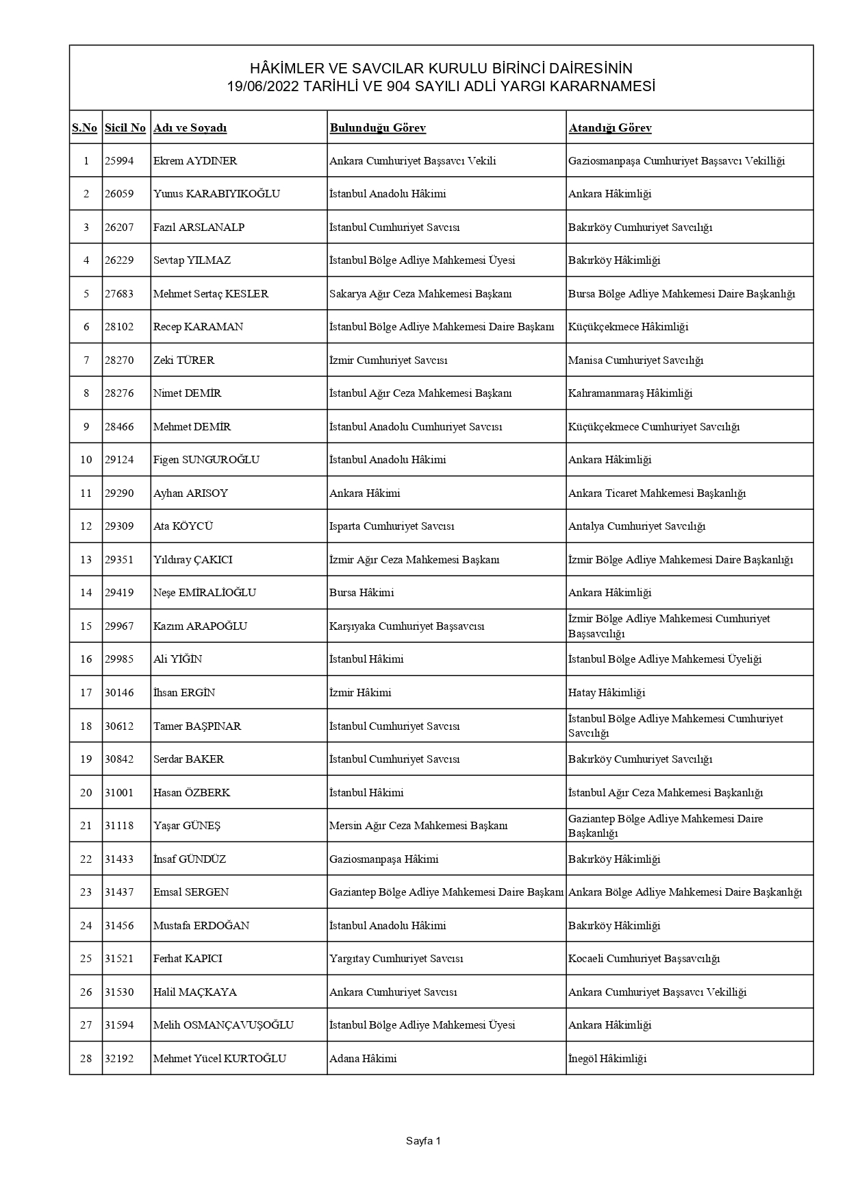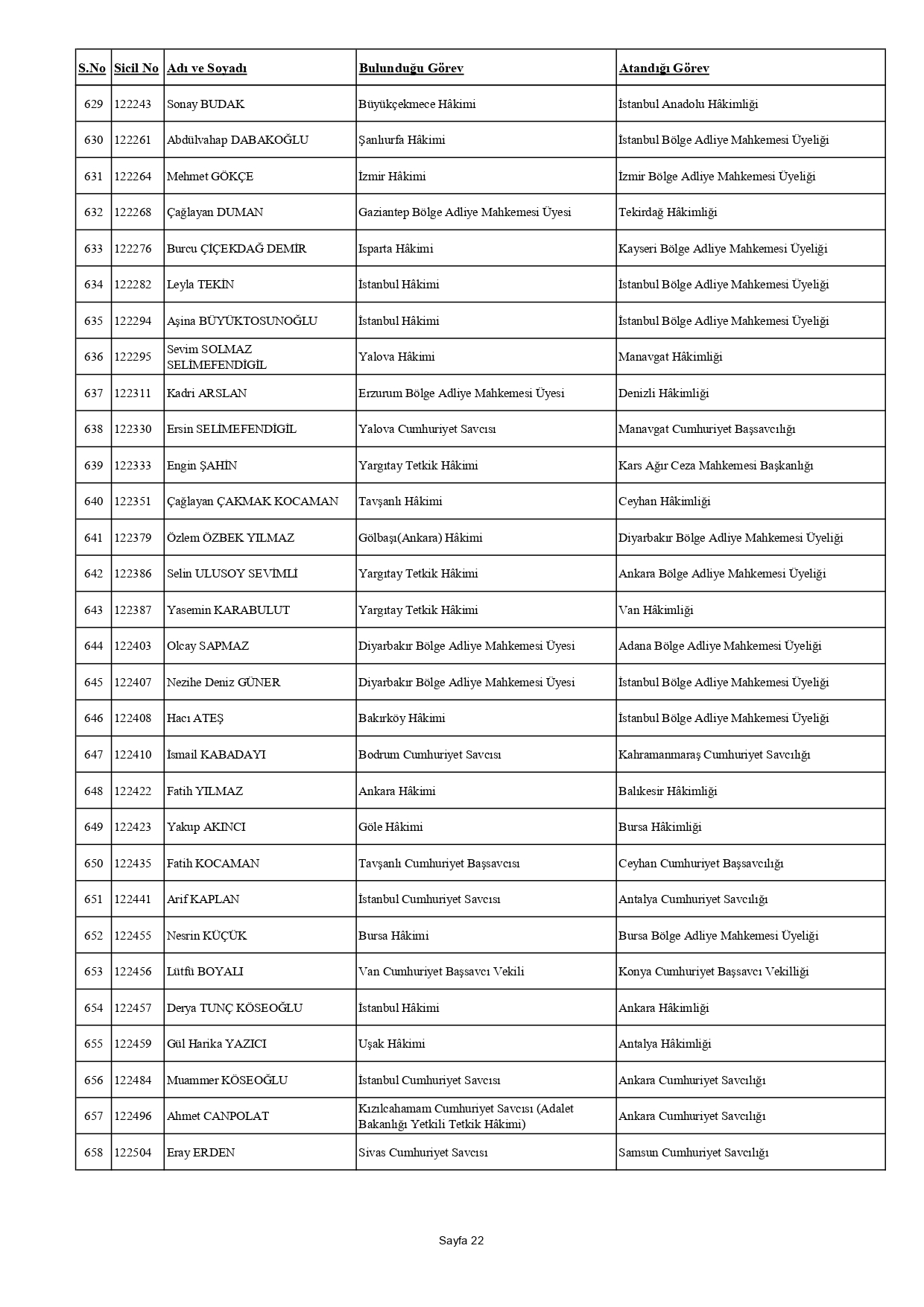 Hakimler ve Savcılar Kurulu 1. Dairesi, 2022 Yılı Adli ve İdari Yargı Ana kararname çalışmalarını tamamladı. 2022 Yılı Adli ve İdari Yargı Ana kararnamesi 5 bin 75 Adli, 351 İdari Yargı mensubunu kapsıyor. Bu kararname ile ilk defa başörtülü bir il başsavcısı atandı. Beyşehir Cumhuriyet Başsavcısı Tuba Ersöz Gümüşhane Cumhuriyet Başsavcısı oldu.