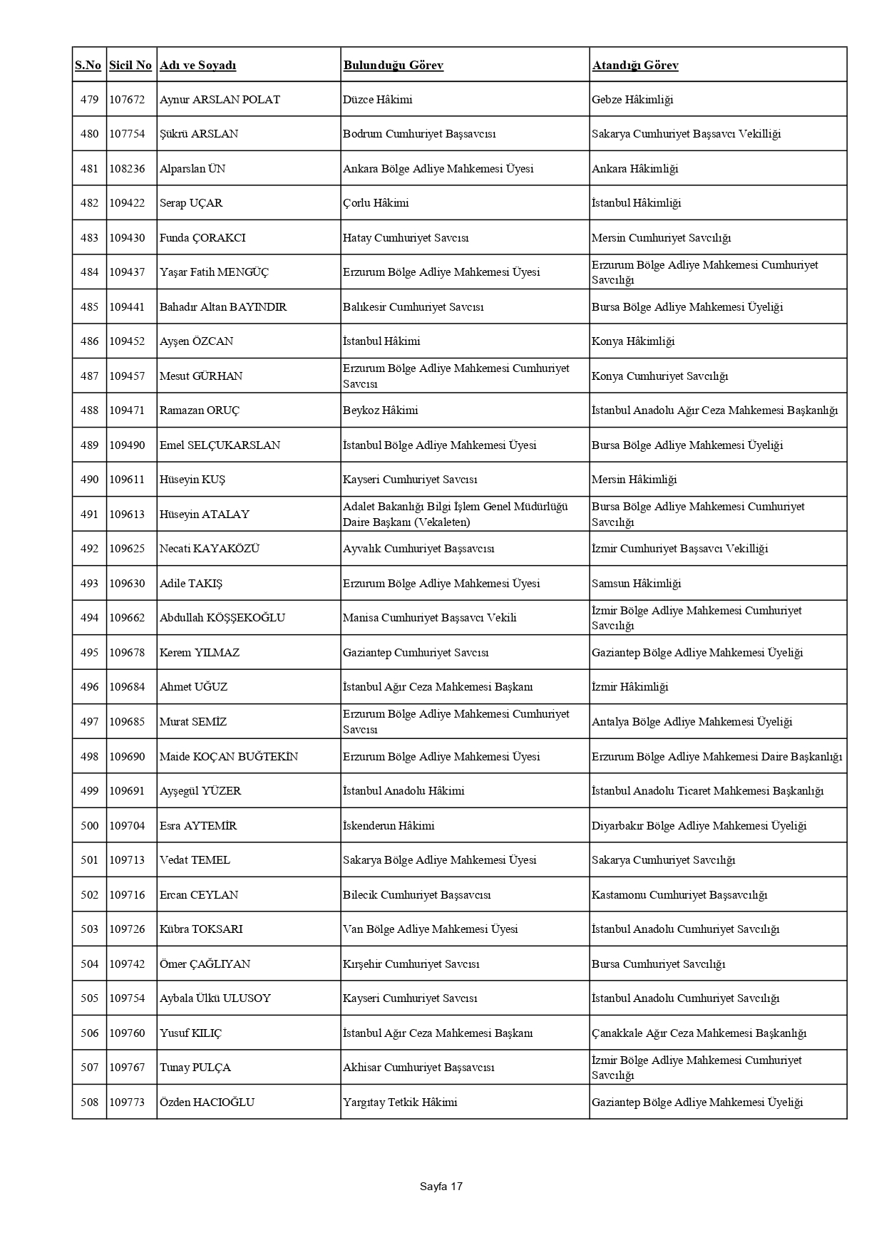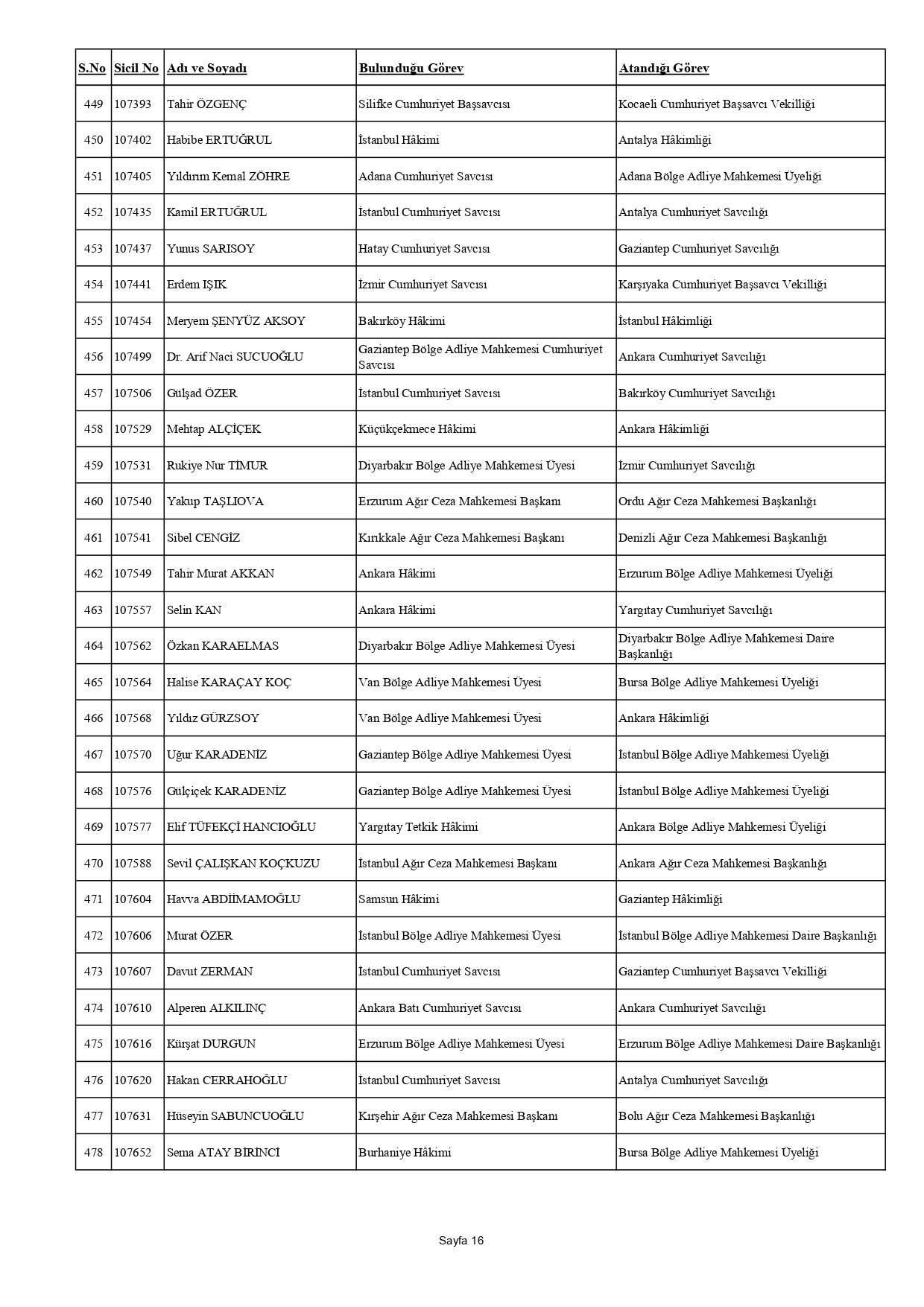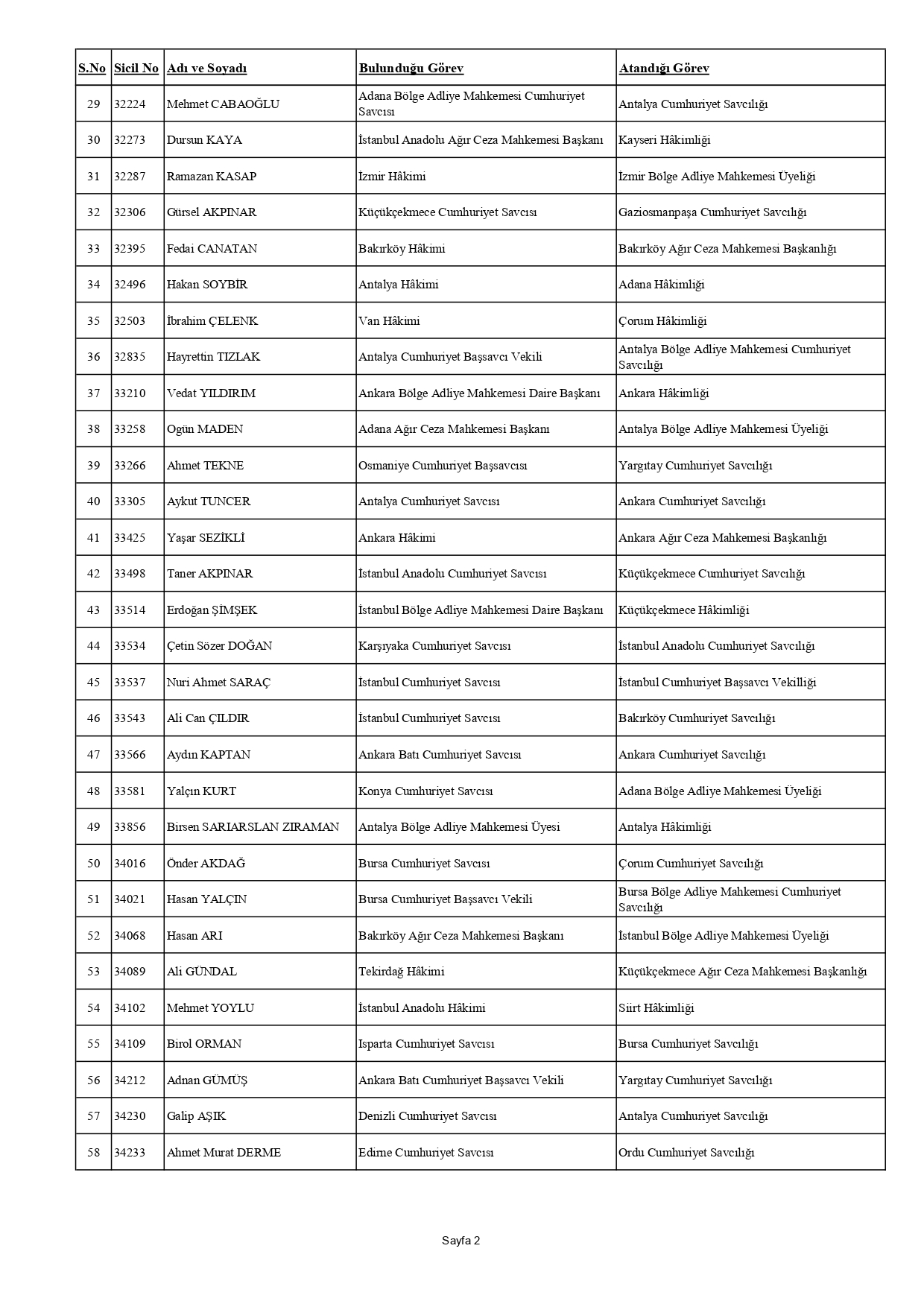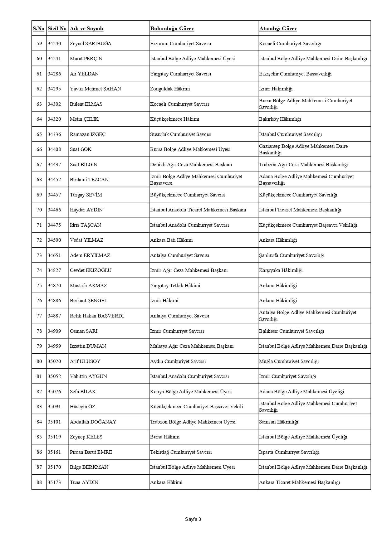 Bu kararname ile ilk defa başörtülü bir il başsavcısı atandı. Beyşehir Cumhuriyet Başsavcısı Tuba Ersöz Gümüşhane Cumhuriyet Başsavcısı oldu.