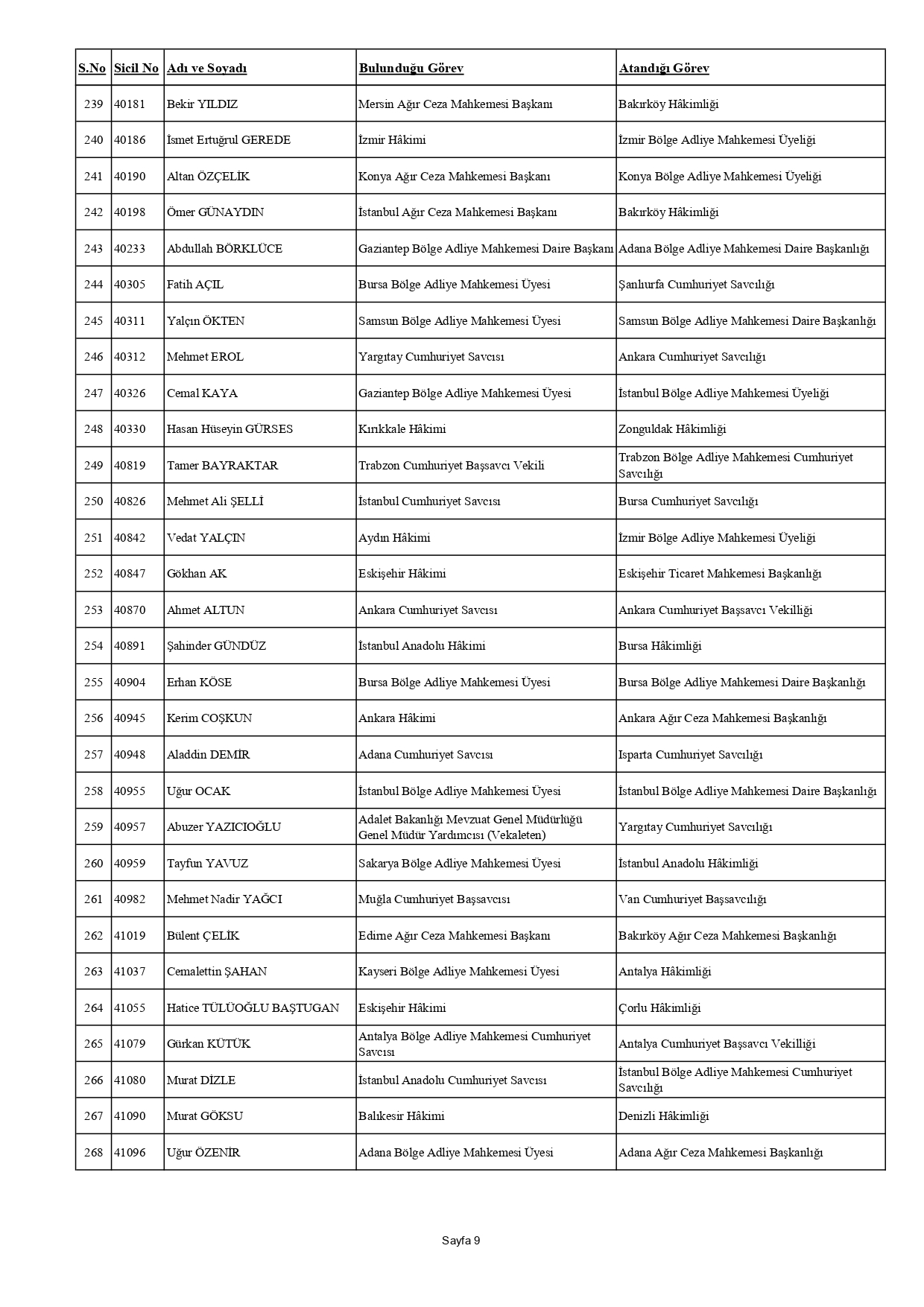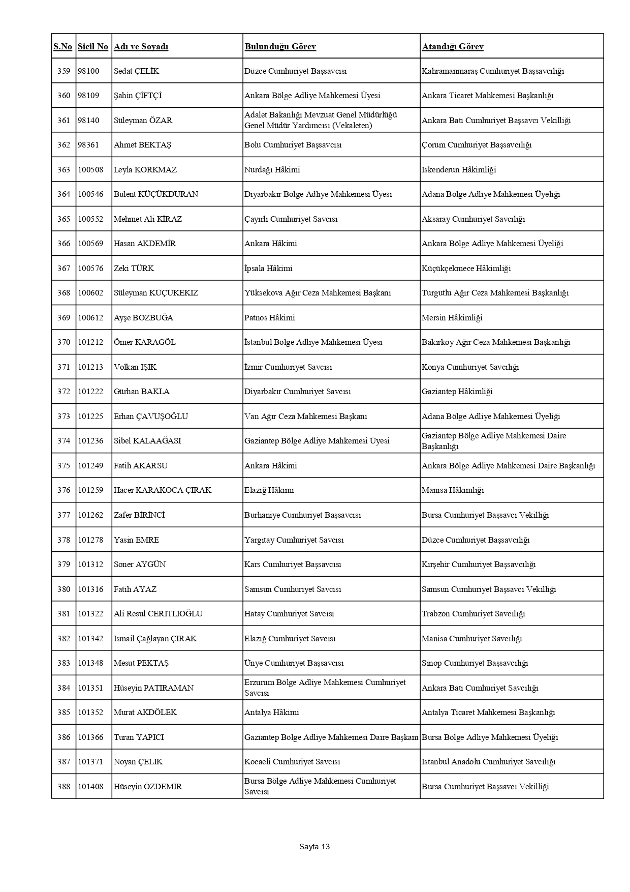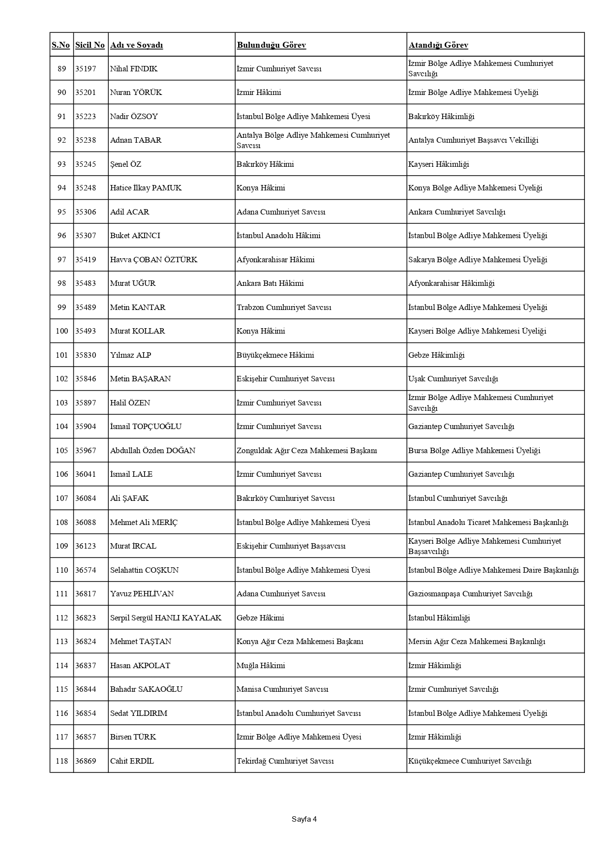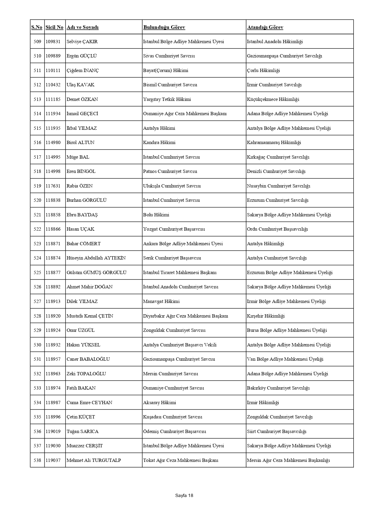 Bu kararname ile ilk defa başörtülü bir il başsavcısı atandı. Beyşehir Cumhuriyet Başsavcısı Tuba Ersöz Gümüşhane Cumhuriyet Başsavcısı oldu.