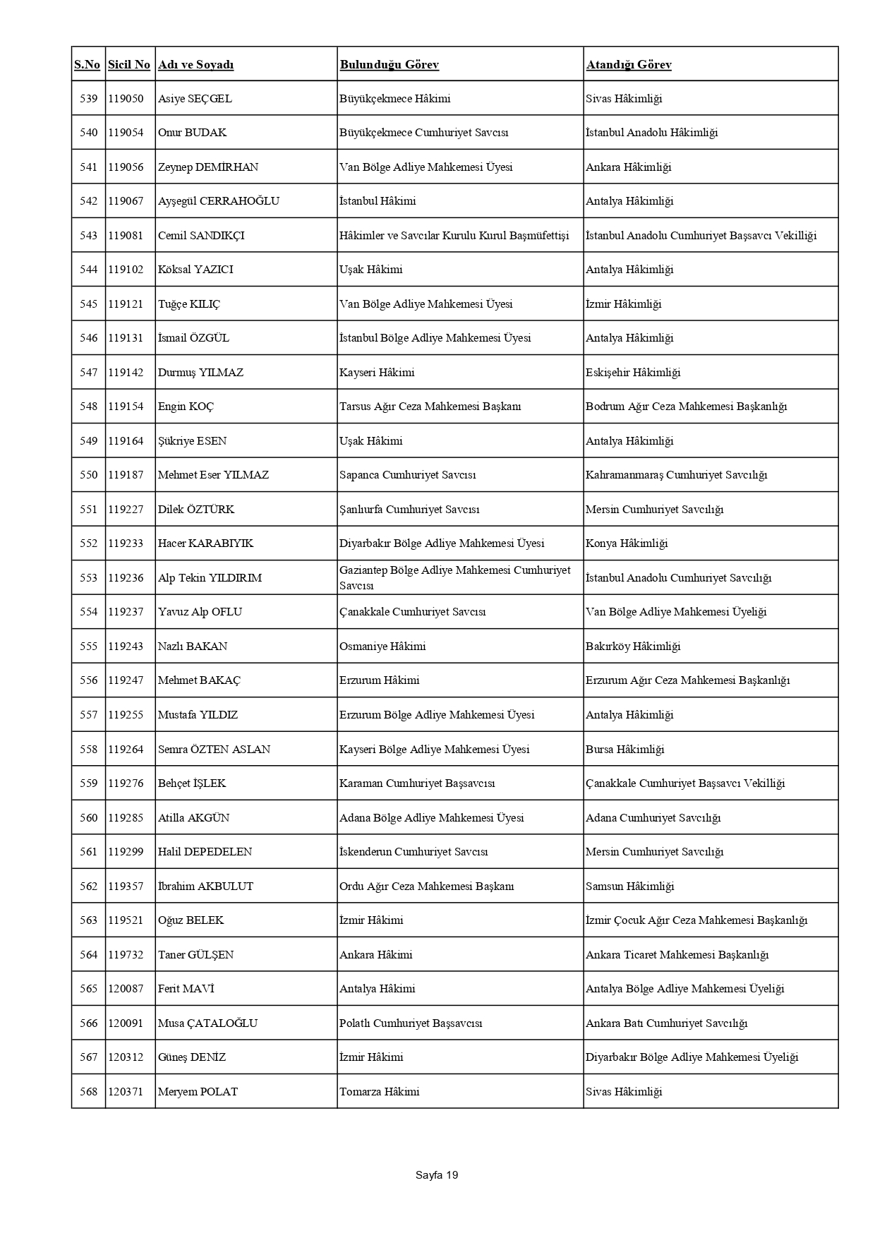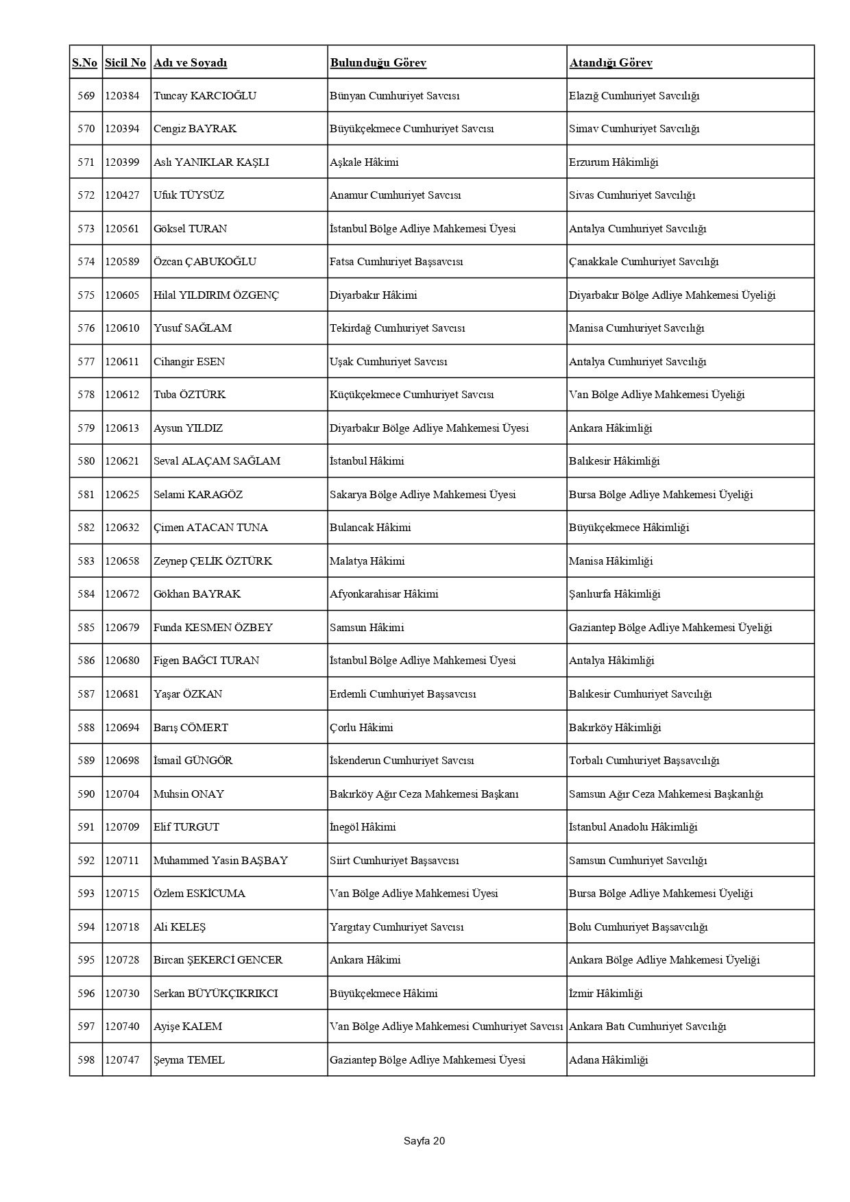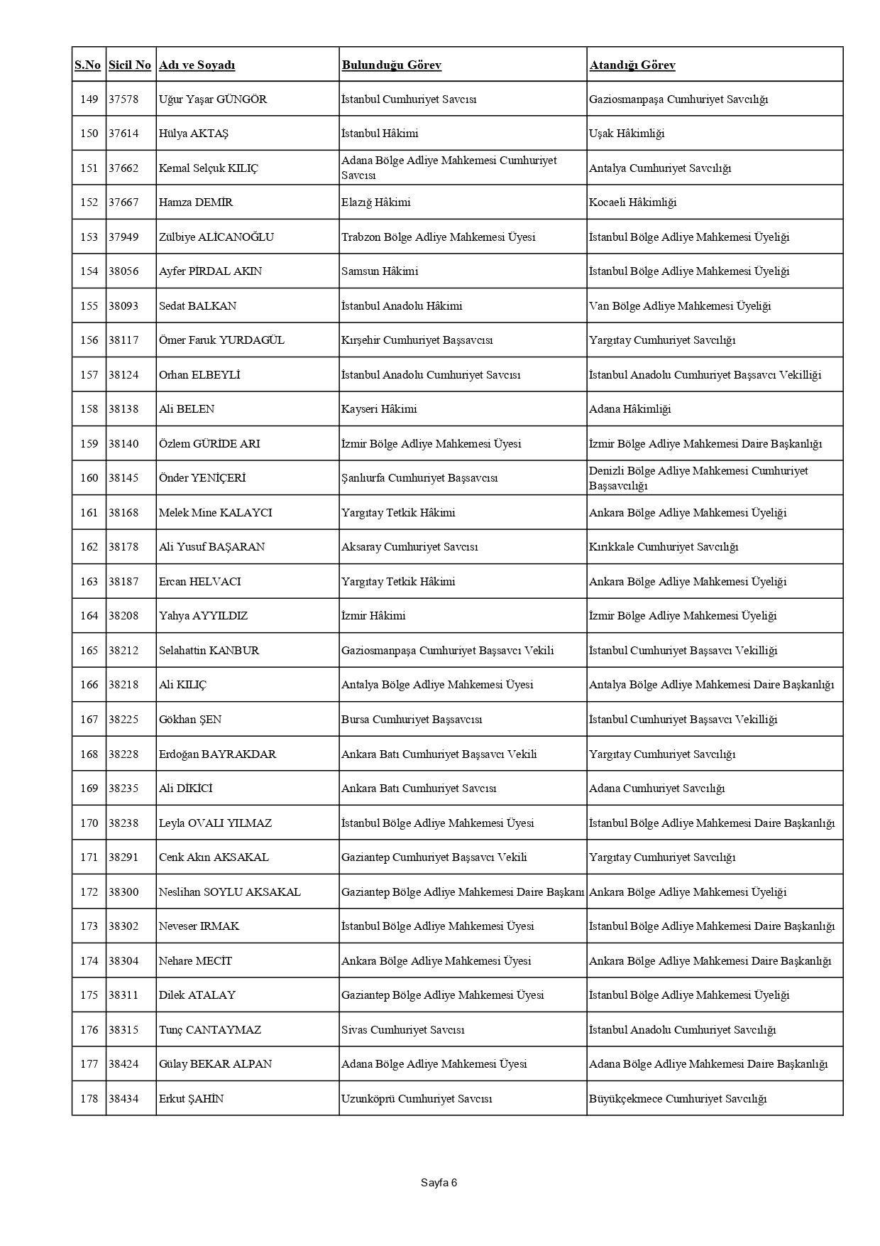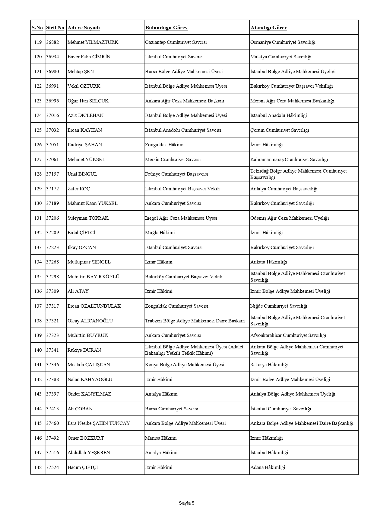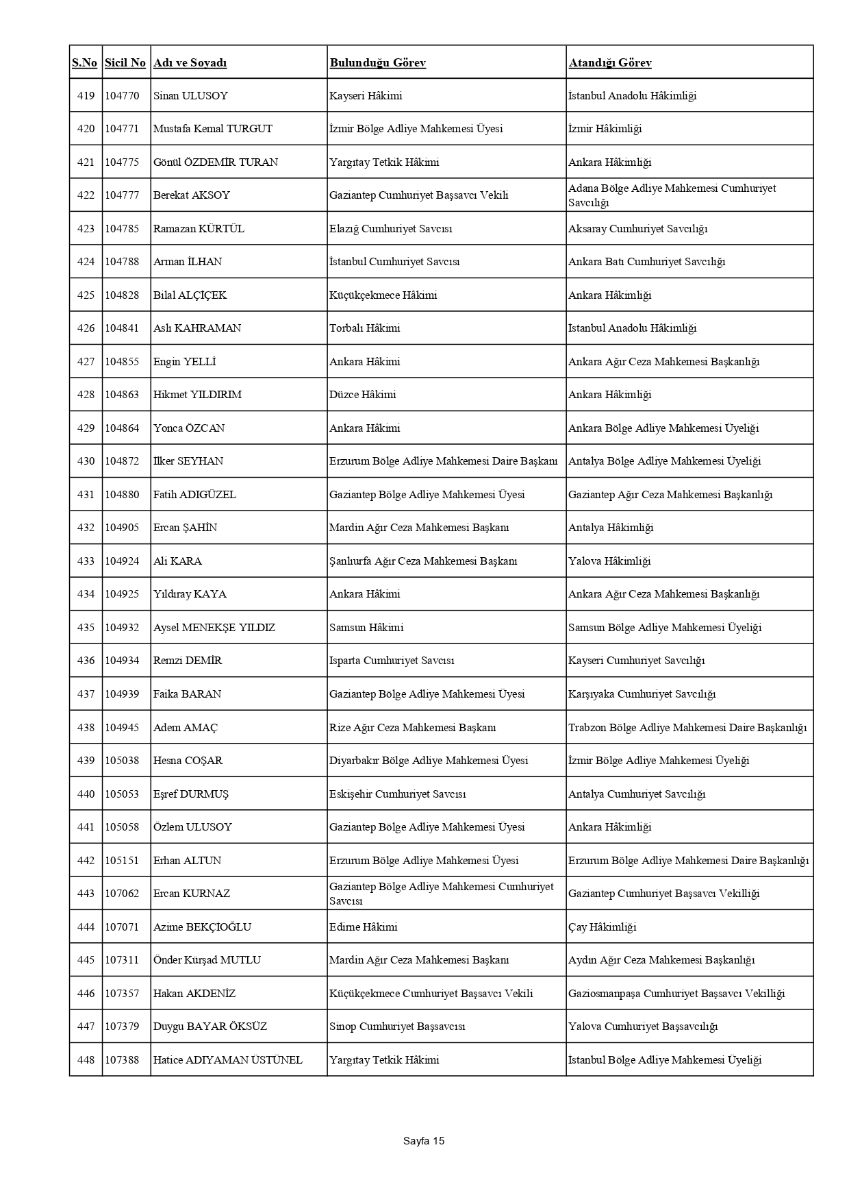 Bu kararname ile ilk defa başörtülü bir il başsavcısı atandı. Beyşehir Cumhuriyet Başsavcısı Tuba Ersöz Gümüşhane Cumhuriyet Başsavcısı oldu.