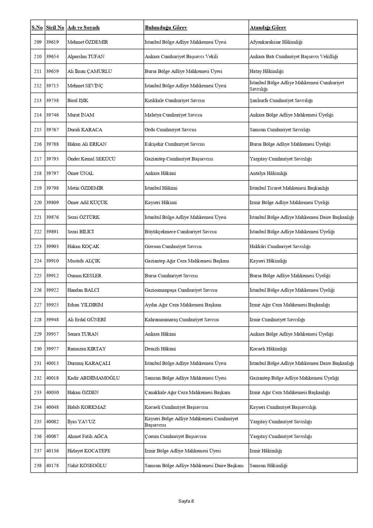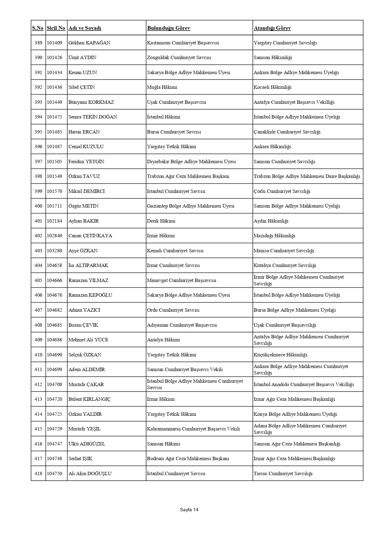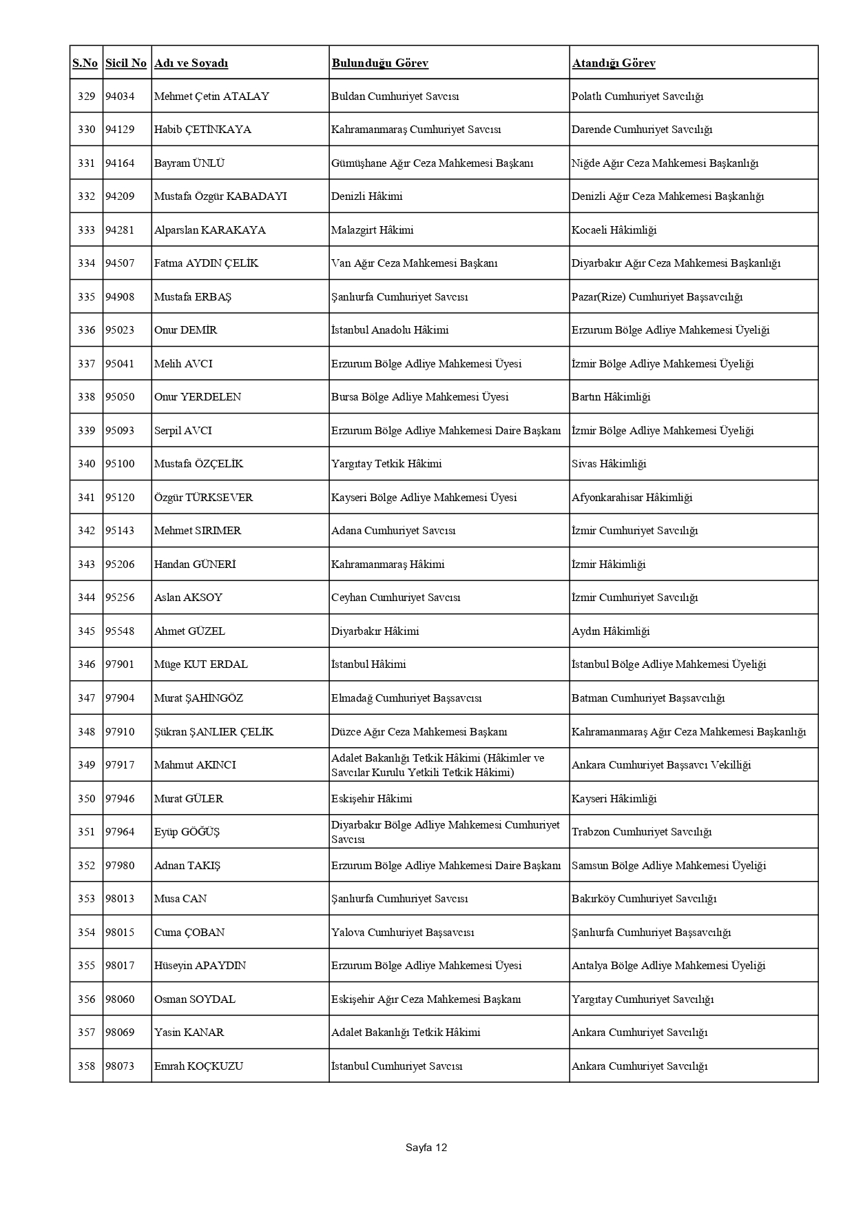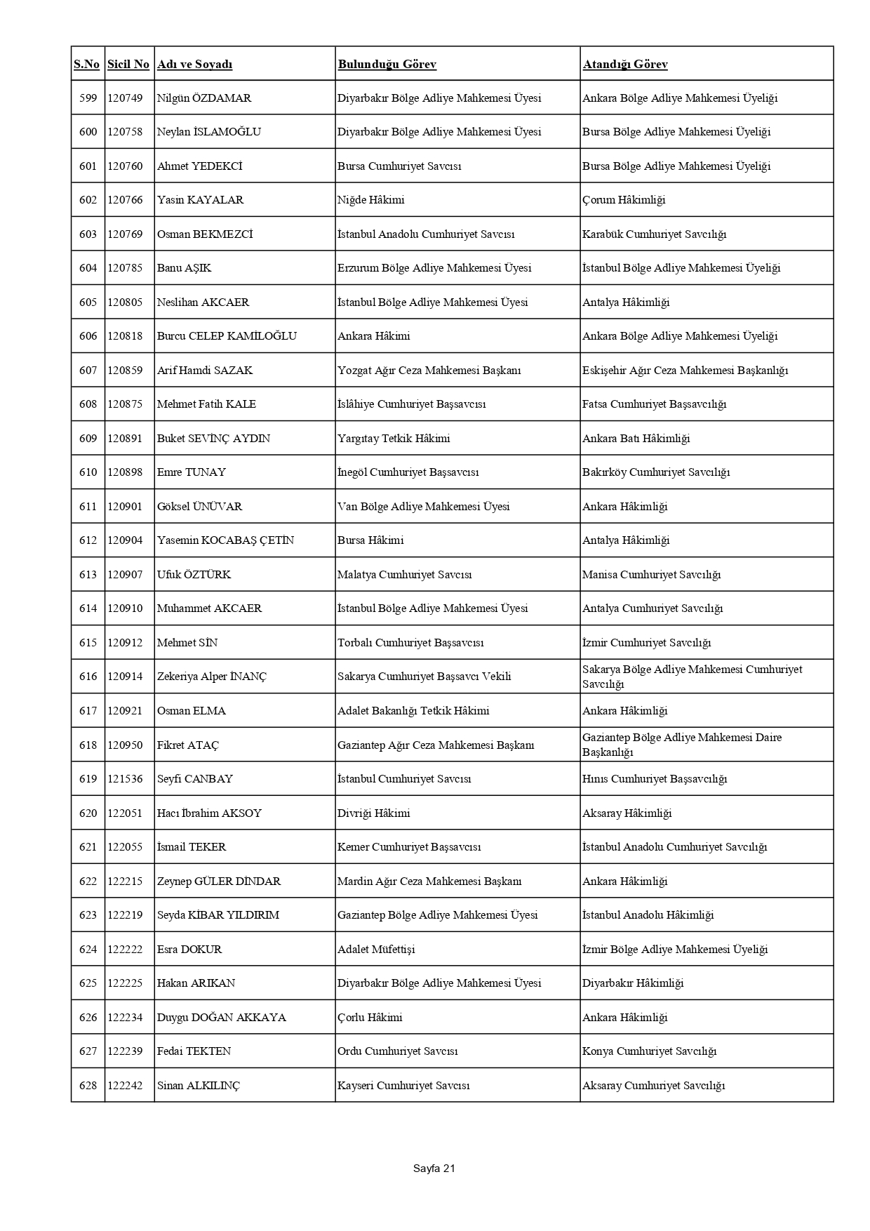 Bu kararname ile ilk defa başörtülü bir il başsavcısı atandı. Beyşehir Cumhuriyet Başsavcısı Tuba Ersöz Gümüşhane Cumhuriyet Başsavcısı oldu.