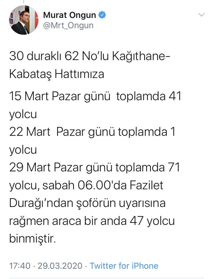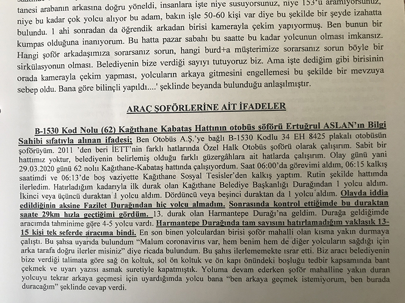 İstanbul Büyükşehir Belediyesi'nin; İBB Sözcüsü Murat Ongun'un; "62 No'lu Kağıthane-Kabataş Hattımıza sabah 06.00'da Fazilet durağından otobüse bir anda 47 yolcu binmiştir" ve İBB Başkanı Ekrem İmamoğlu'nun, "Görüntüleri izlerken kanım dondu" şeklindeki gerçeğe aykırı iddiasını desteklemek için sahte evrak düzenlediği tespit edildi.