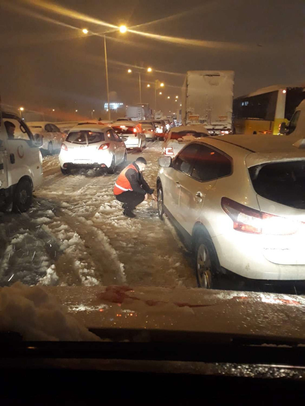 Gece boyunca kar yağışının en yoğun olduğu yerlerde ilçe belediye ekipleri ve bazı sivil toplum kuruluşları, yolda kalan araçlardaki vatandaşlara, çay, çorba, su ve yiyecek dağıttı. Birçok vatandaş aracını yol kenarlarına bırakarak yaya olarak evlerinin yolunu tuttu.