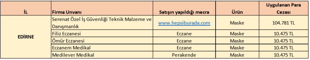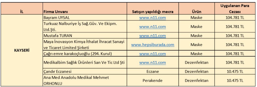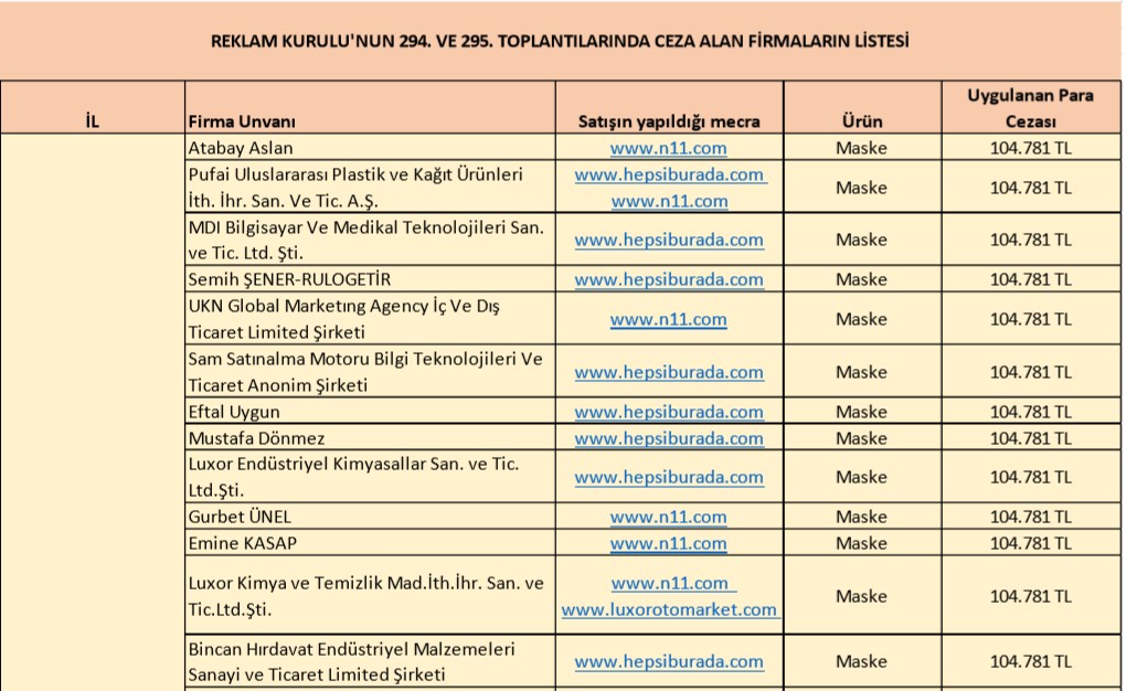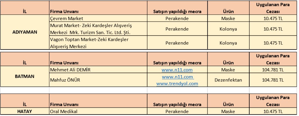 Fahiş fiyat uygulayan firmalar hangileri? Koronavirüs fırsatçısı 198 firmayı Ticaret Bakanlığı ifşa etti. Ticaret Bakanlığı Reklam Kurulunca ceza kesilen, yeni tip corona virüsü salgını nedeniyle talebi artan ürünlerde fahiş fiyat uygulayan firma isimlerini açıkladı. Listede uygulanan para cezası, ürün, satışın yapıldığı mecra ve firma unvanı paylaşıldı. İşte il il fahiş fiyat uygulayan firmalar listesi...