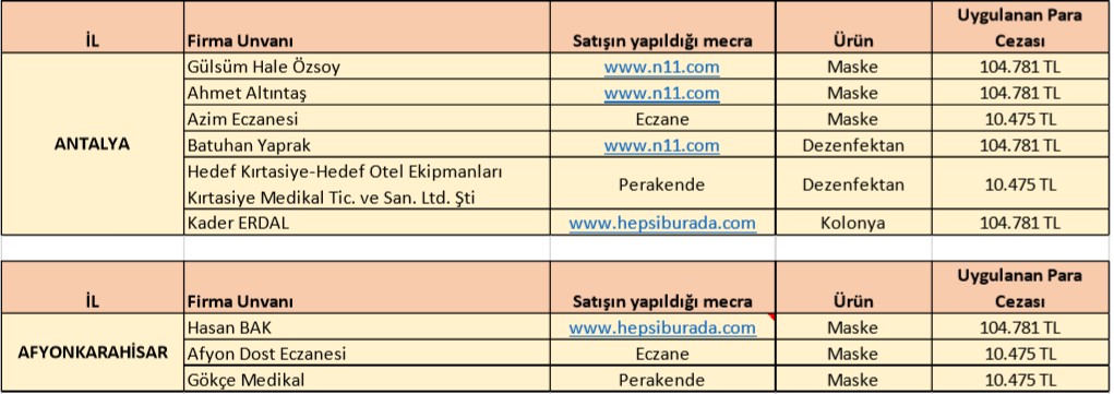 İl il fahiş fiyat uygulayan firmalar listesi: Koronavirüs salgını sonrası fiyat yükselten firmaların isimleri