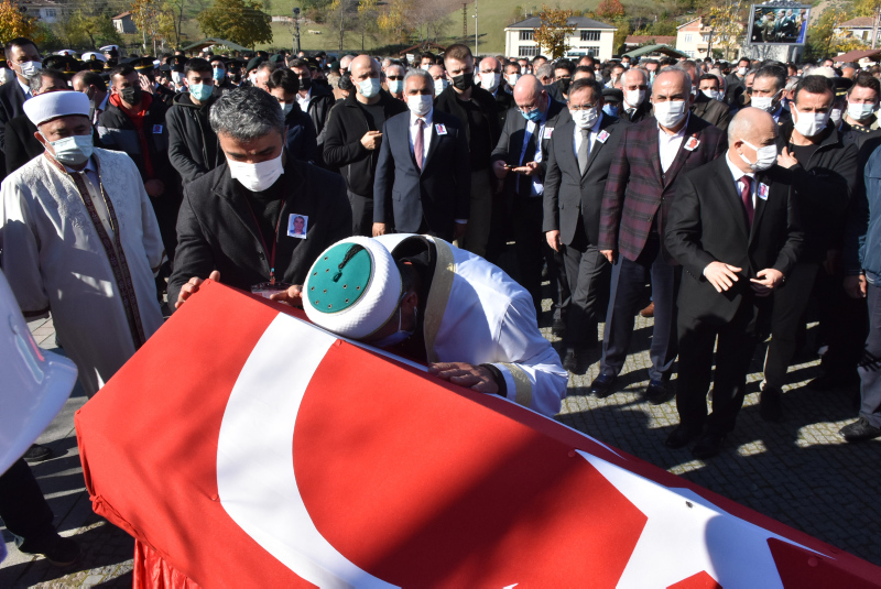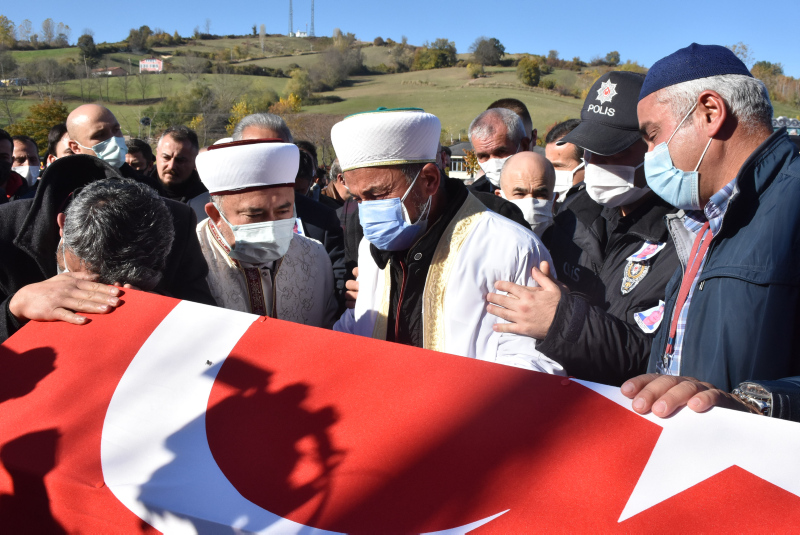 Trabzon'da 'dur' ihtarına uymayan 16 yaşındaki ehliyetsiz sürücünün çarpması sonucu kaldırıldığı hastanede şehit olan Polis Memuru Yusuf Ceylan'ın cenaze namazını emekli imam olan babası İlyas Ceylan Kıldırdı. Acılı baba, helallik istedikten sonra oğlunun tabutuna sarılarak ağladı.