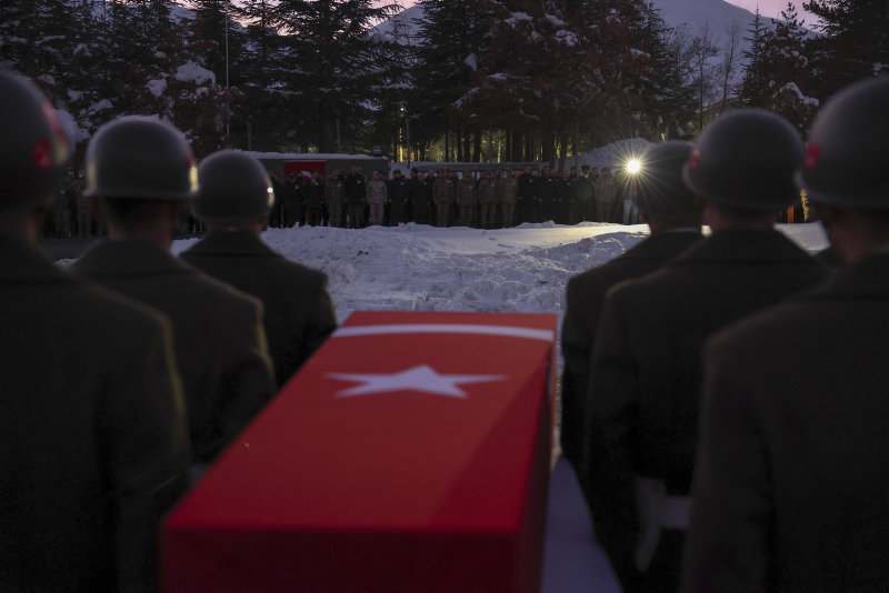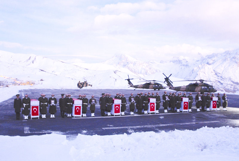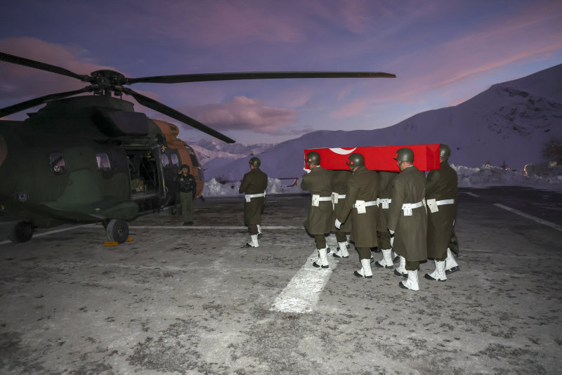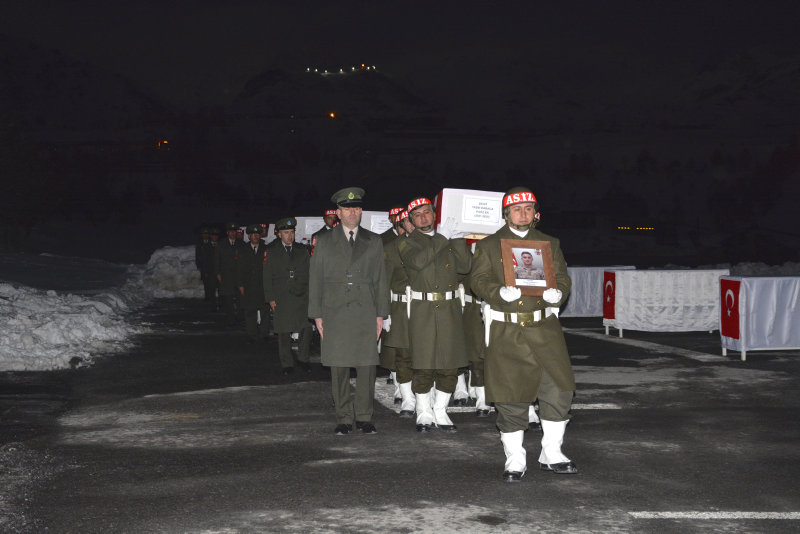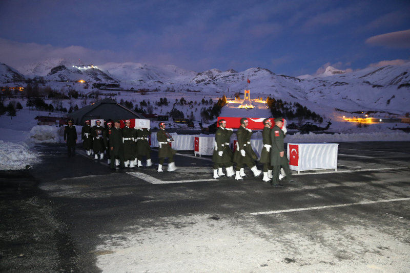 İl Müftüsü İsmail Fakirullahoğlu'nun okuduğu dua sonrası şehitlerin naaşları, silah arkadaşları tarafından helikoptere konularak Yüksekova Selahaddin Eyyubi Havalimanı'na götürüldü.