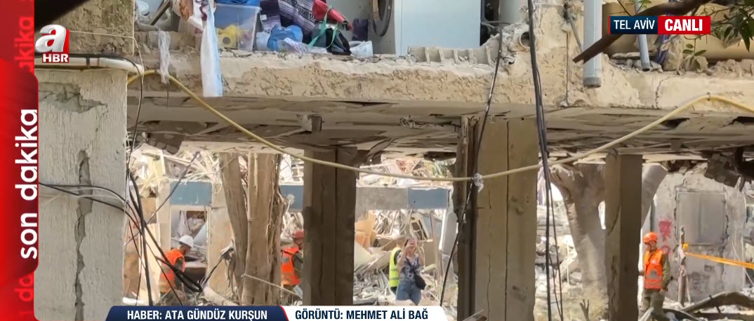 A Haber muhabiri Ata Gündüz Kurşun canlı yayında Tel Aviv'deki yıkımın boyutunu gözler önüne serdi.