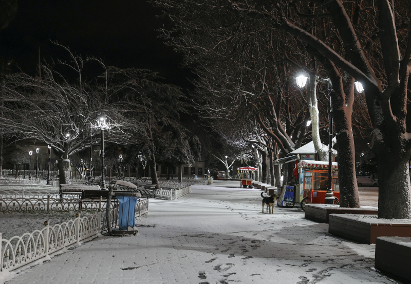 Kentte dün aralıklarla yağan kar, bugün de etkisini devam ettiriyor. Kentin bazı ilçelerinde görülen kar yağışı yer yer tipi şeklinde devam ediyor.