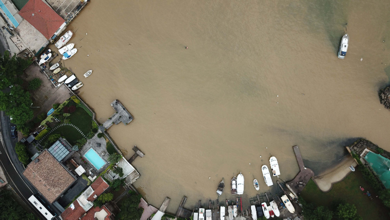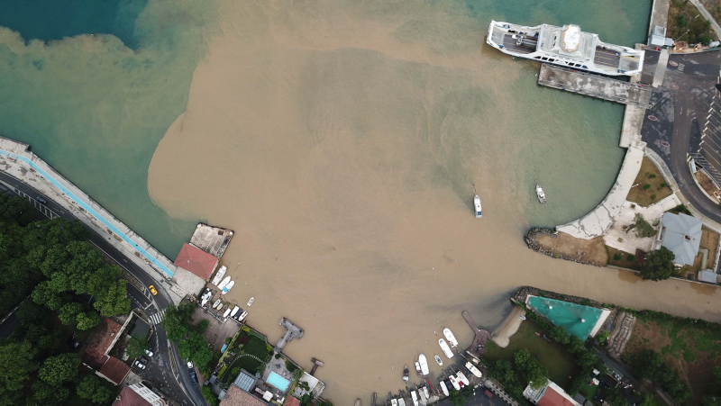 Beykoz'da öğleden sonra etkili olan yağmurun etkisiyle İstanbul Boğazı'na çamurlu su aktı. Çamurlu su nedeniyle rengi değişen boğaz havadan da görüntülendi.