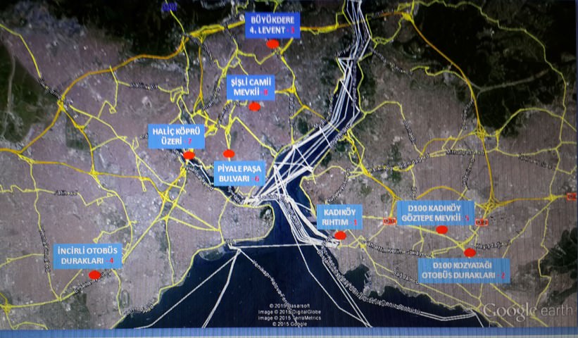 İŞTE İSTANBUL'UN KARA NOKTALARI1-Kadıköy Rıhtım2-D.100 Kozyatağı otobüs durağı3-Büyükdere caddesi 4.levent otobüs durakları4-İncirli otobüs durakları5-D.100 Kadıköy Göztepe mevkii6-Kasımpaşa, Piyalepaşa bulvarı7-Şişli Camii önü8-Haliç köprüsü mevkii