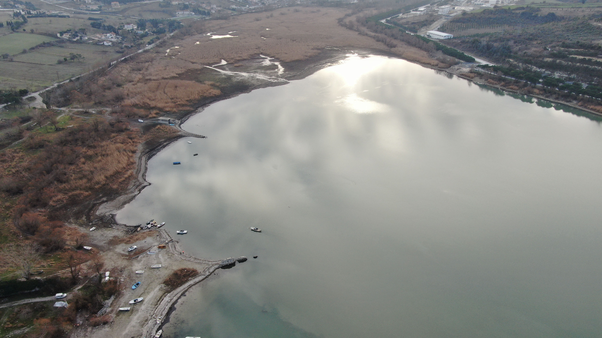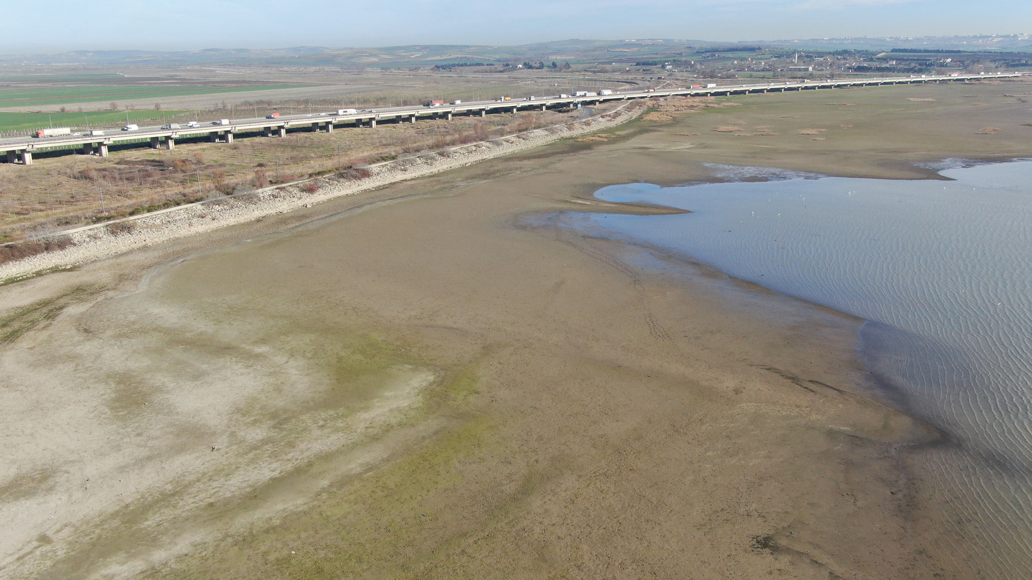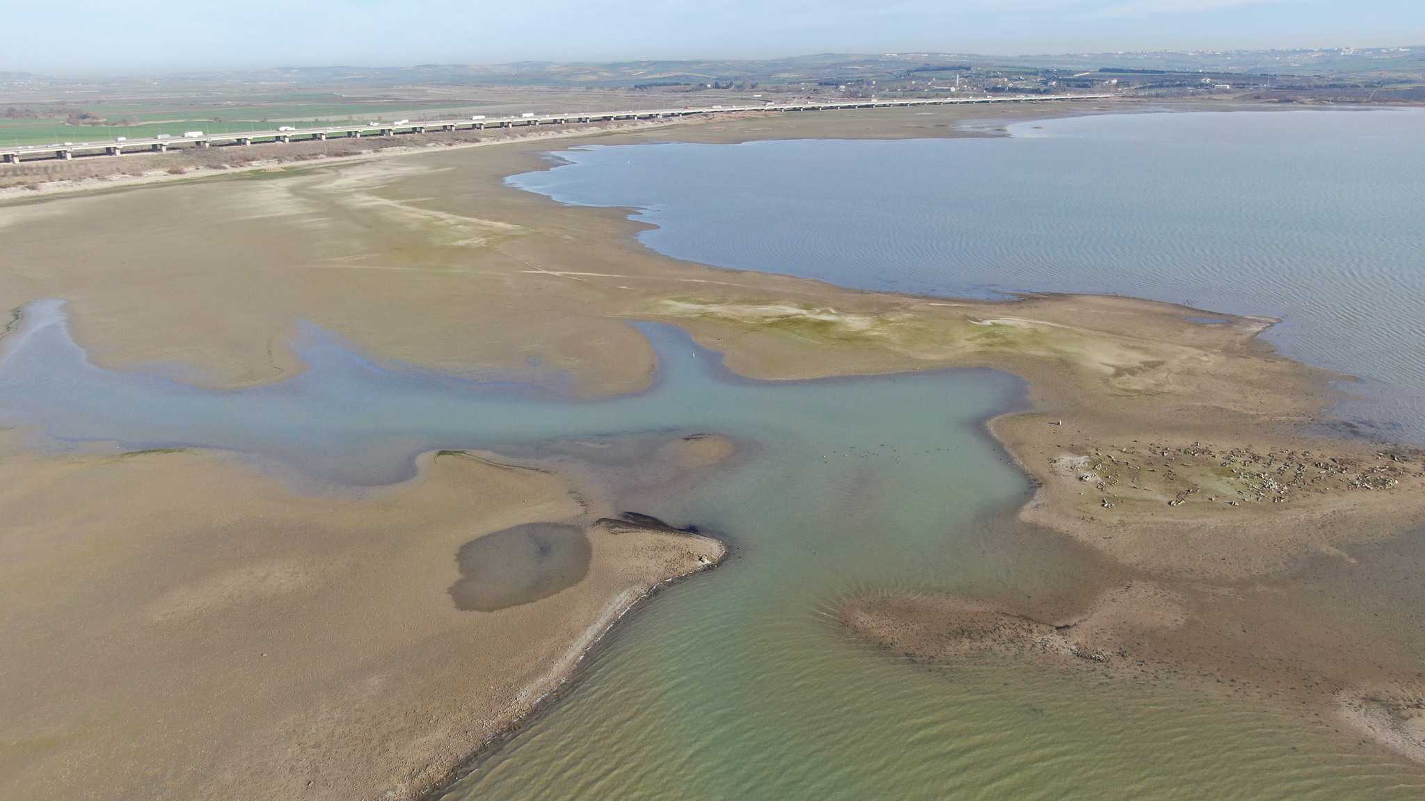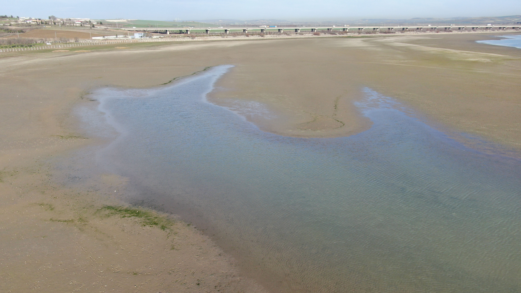 Su seviyesinin geri çekilmesiyle daha önce suyla dolu alanlar adeta çöle döndü. Bölgedeki son durum havadan görüntülendi.
