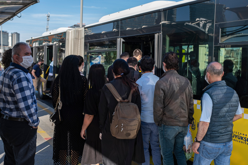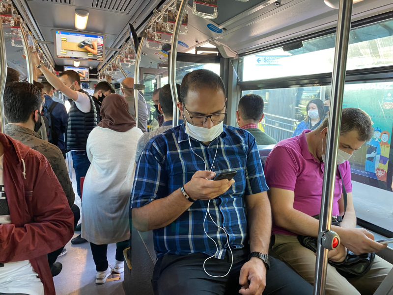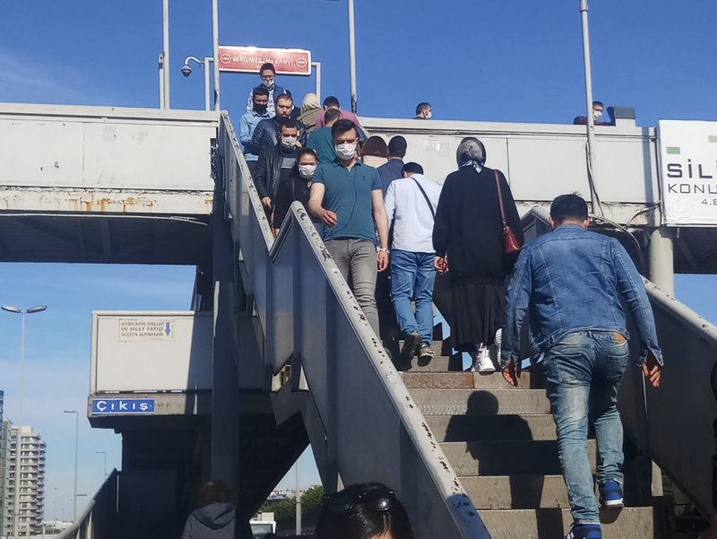 İstanbul'da toplu taşıma araçlarında 1 Haziran'dan bu yana oluşan dikkat çekici yoğunluk bugün sabah erken saatlerde de devam etti. Yoğunluk nedeniyle metrobüs içerisinde ve duraklarda sosyal mesafe de hiçe sayıldı.