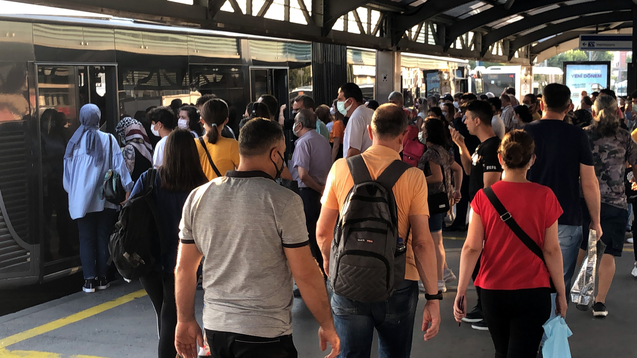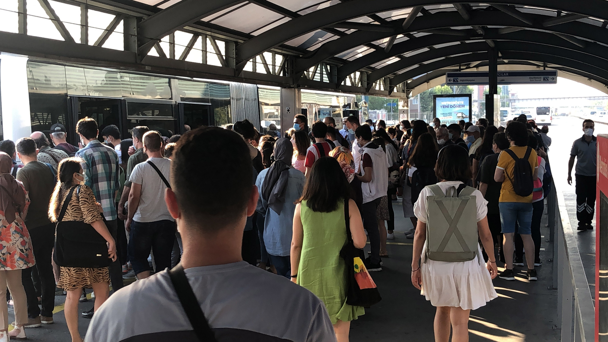 Kurban Bayramı için ilan edilen 9 günlük tatil ardından işlerine gitmek üzere yola dökülen binlerce kişi metrobüslere akın edince yoğunluk yaşandı.